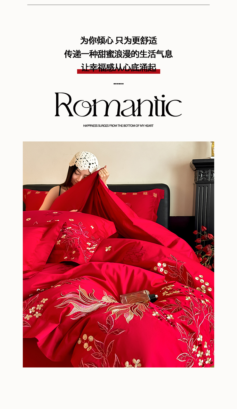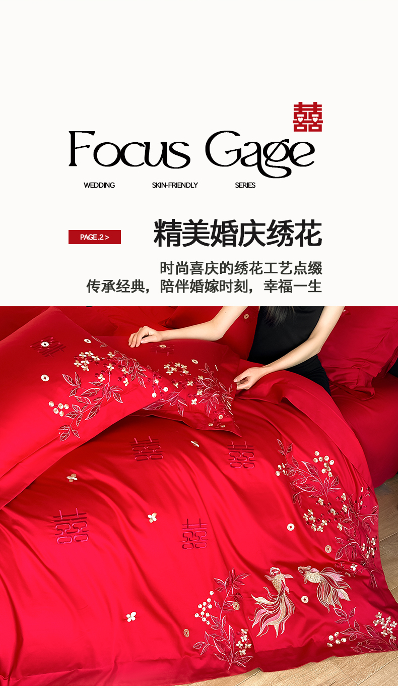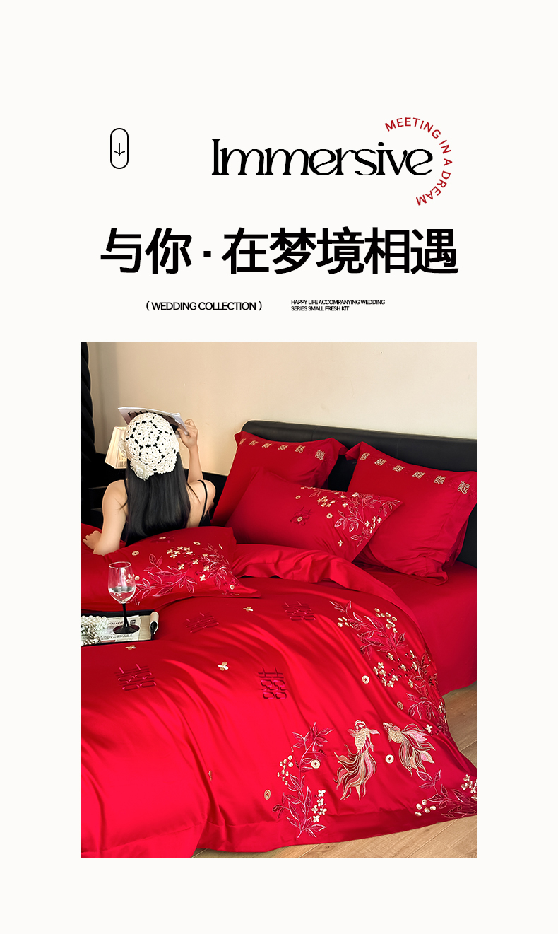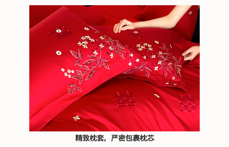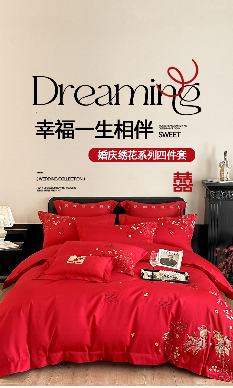 当前位置: 91家纺网 > 商品网购 > 床品套件 > 四件套 > 婚庆四件套 > 置顶家纺 2026新款小清新亲肤婚庆绣花四件套 吉庆有鱼-金大红
