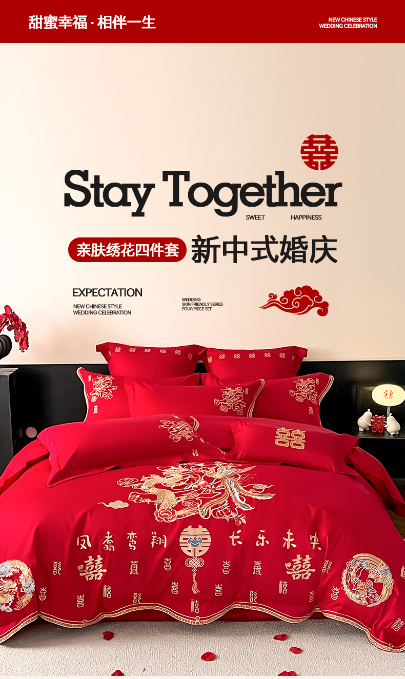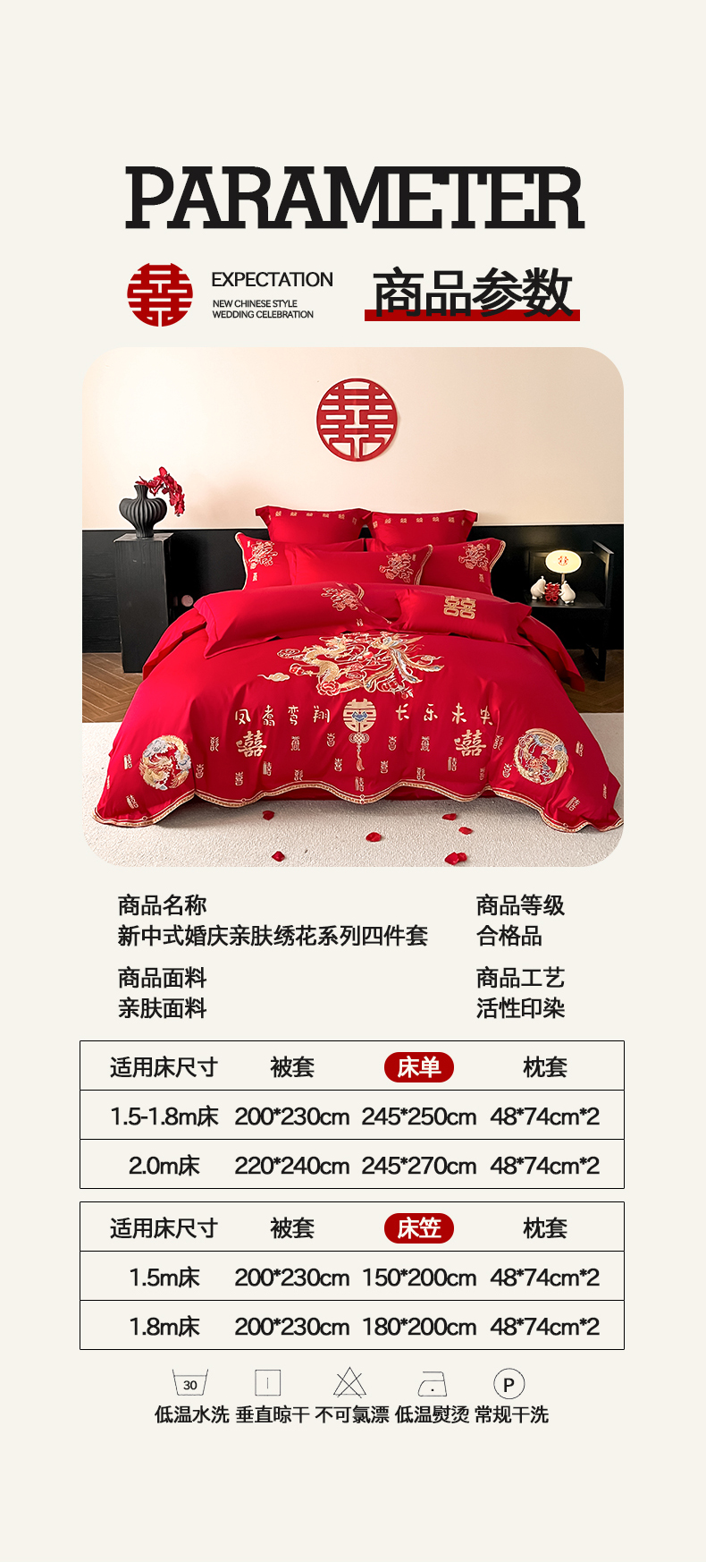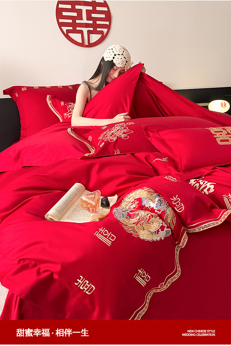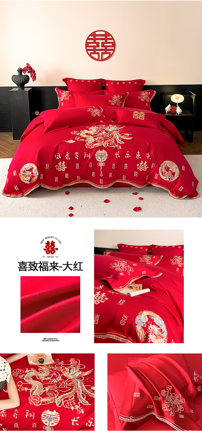 当前位置: 91家纺网 > 商品网购 > 床品套件 > 四件套 > 婚庆四件套 > 置顶家纺 2026新款新中式亲肤婚庆绣花四件套 喜致福来-大红