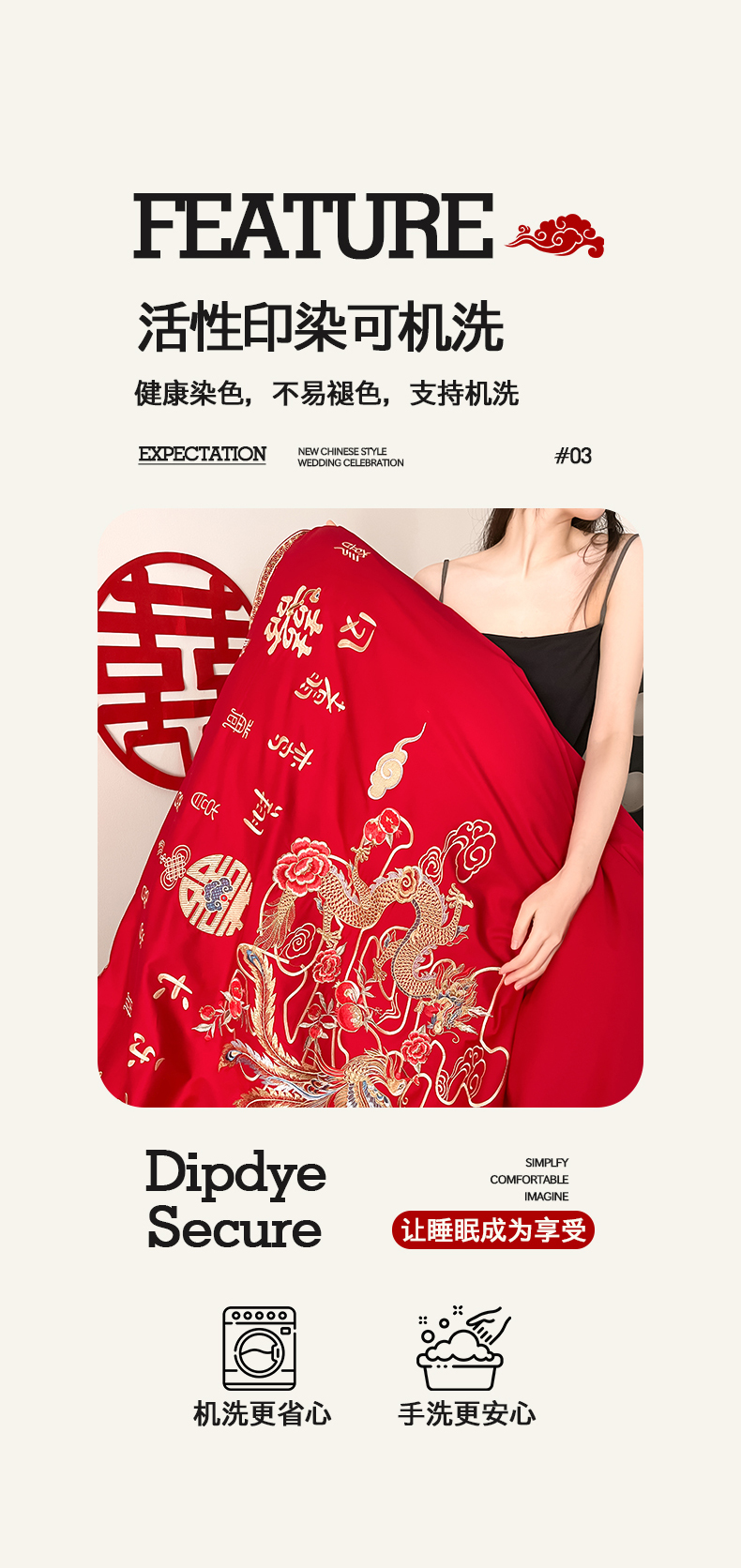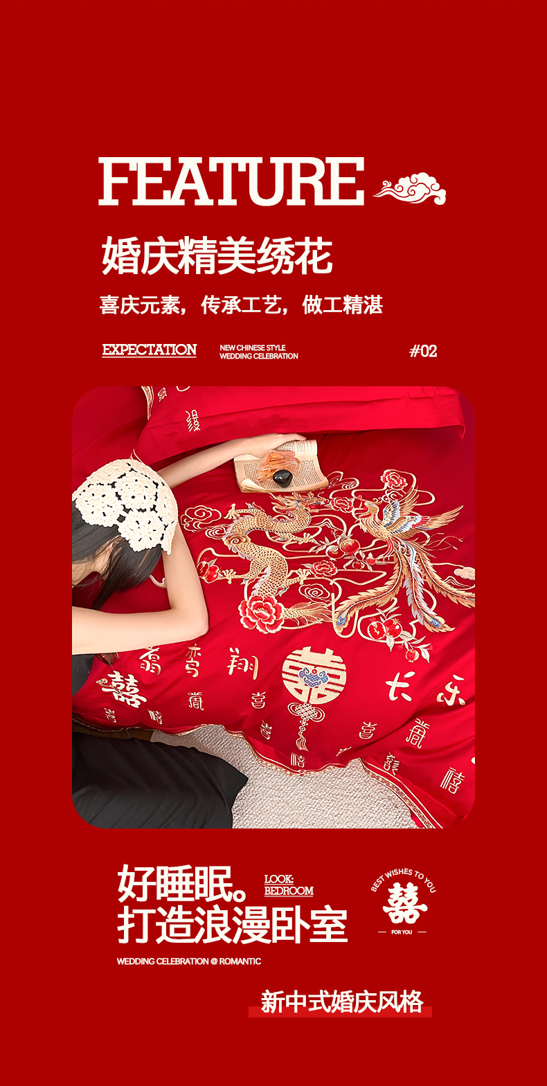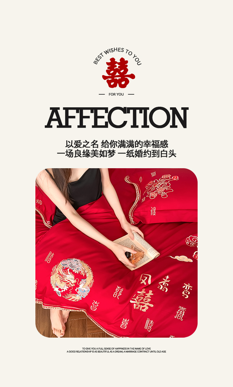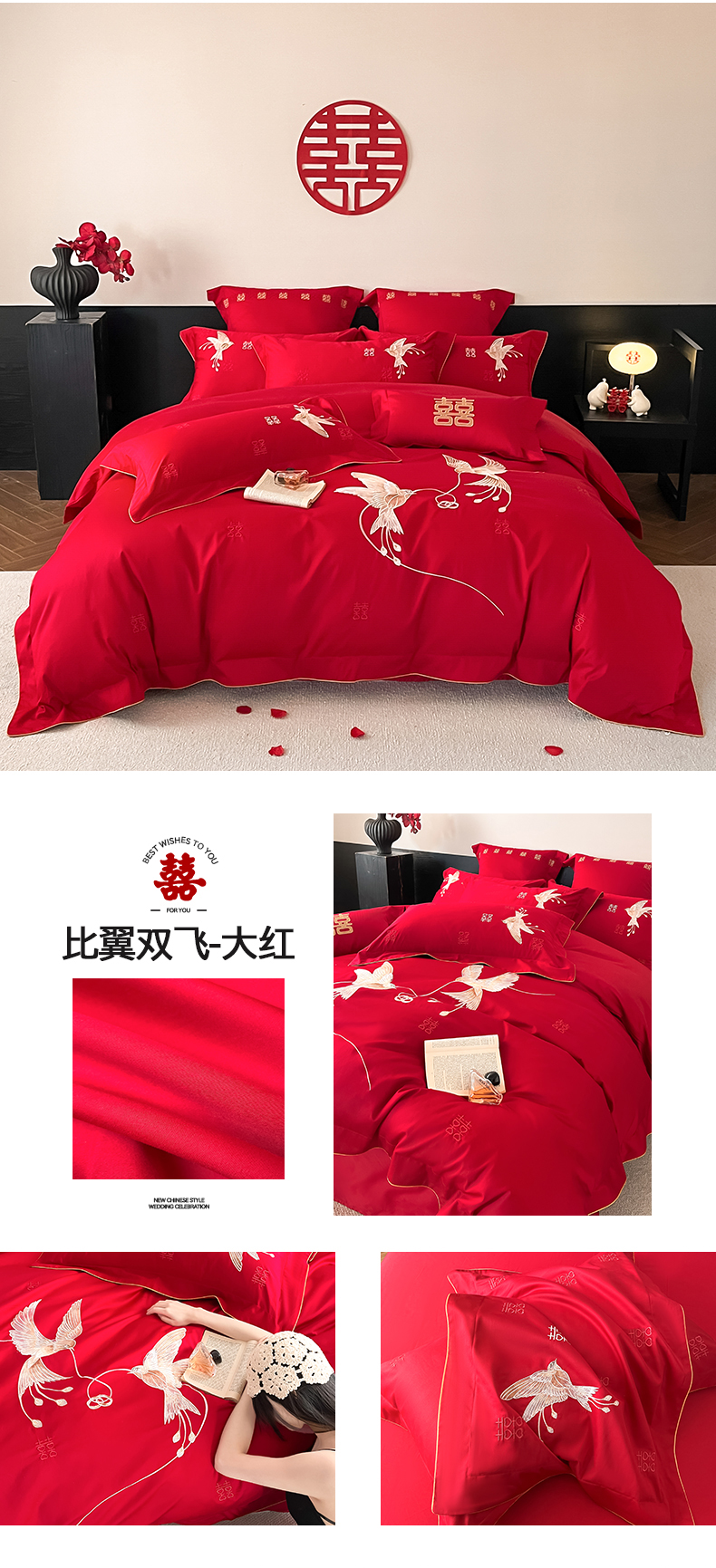 当前位置: 91家纺网 > 商品网购 > 床品套件 > 四件套 > 婚庆四件套 > 置顶家纺 2026新款新中式亲肤婚庆绣花四件套 喜致福来-大红
