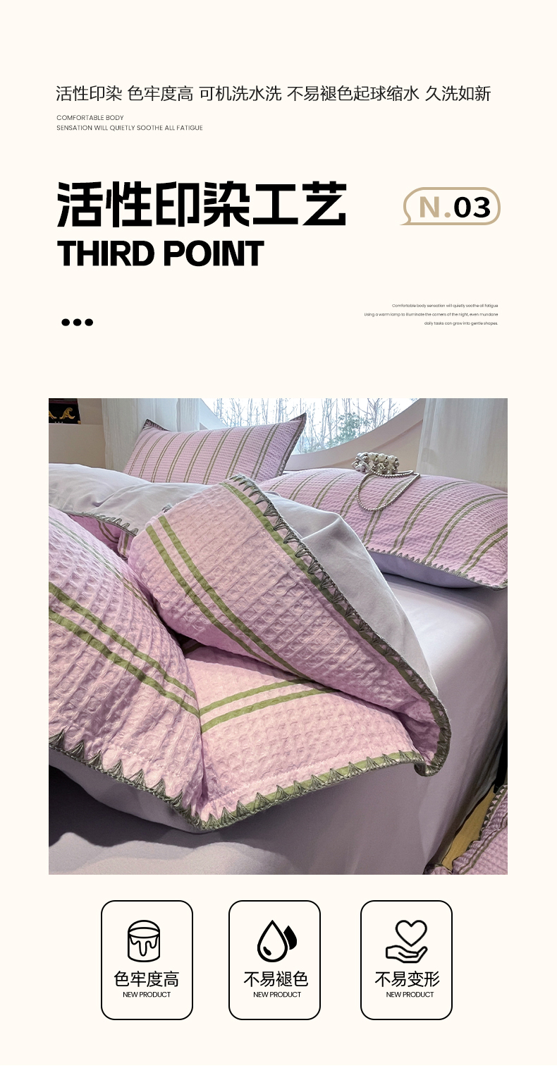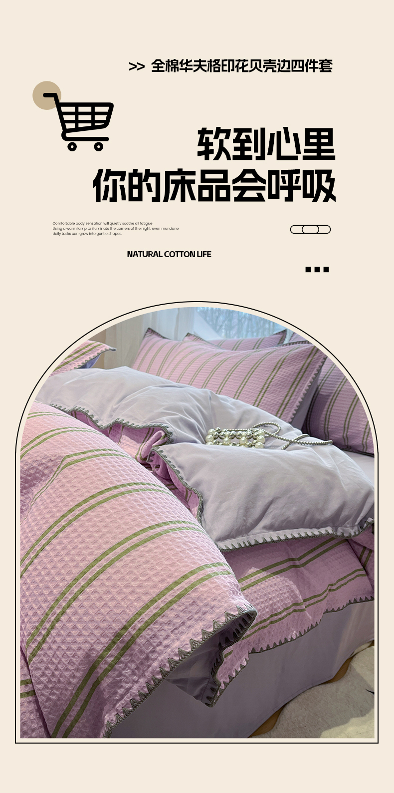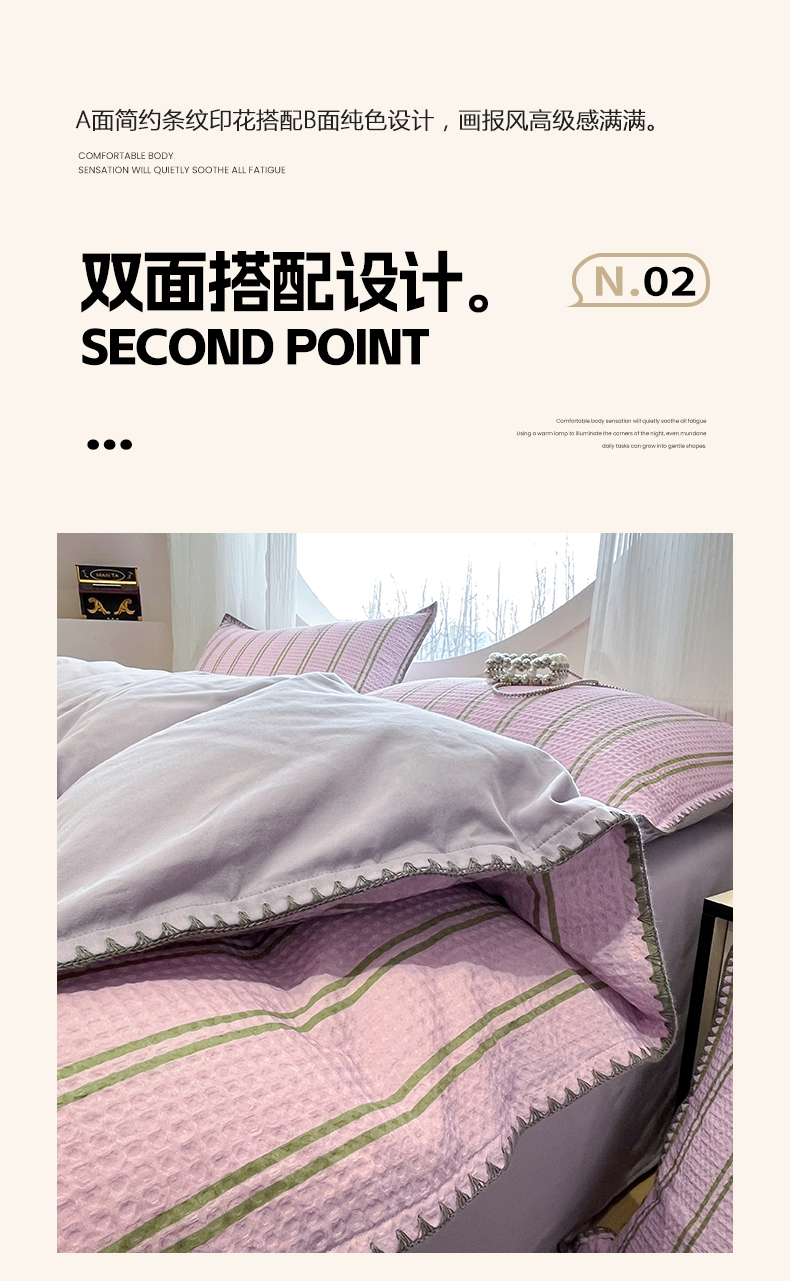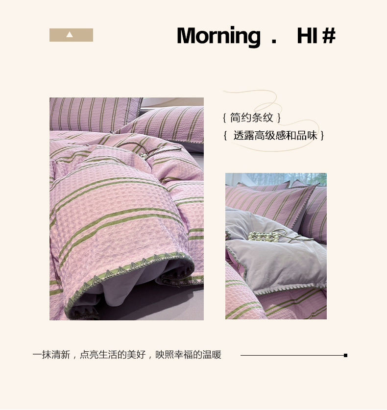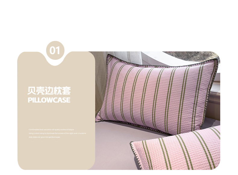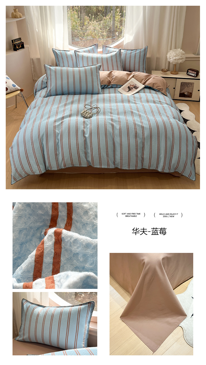 当前位置: 91家纺网 > 商品网购 > 床品套件 > 四件套 > 全棉普通四件套 > 莱茵家居 2026新款A类全棉华夫格印花贝壳边套件-华夫系列 华夫-树莓