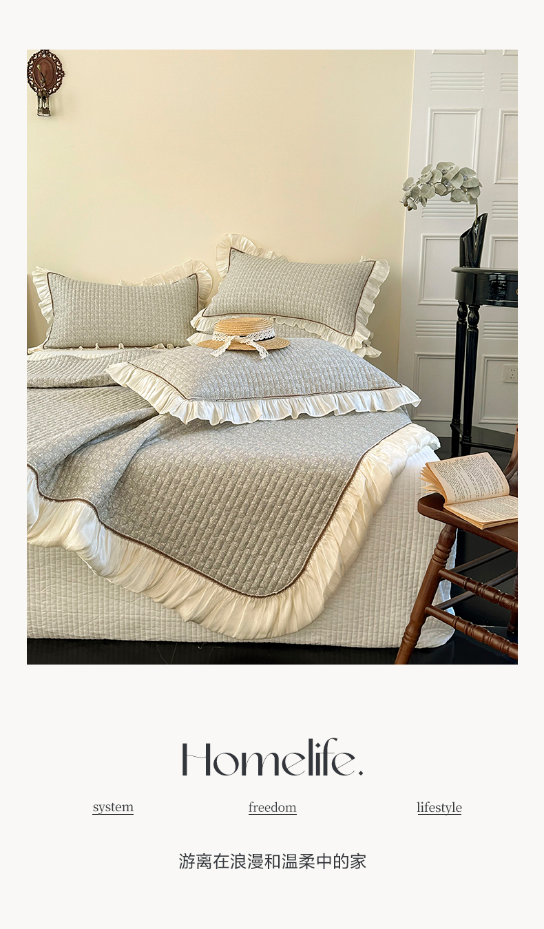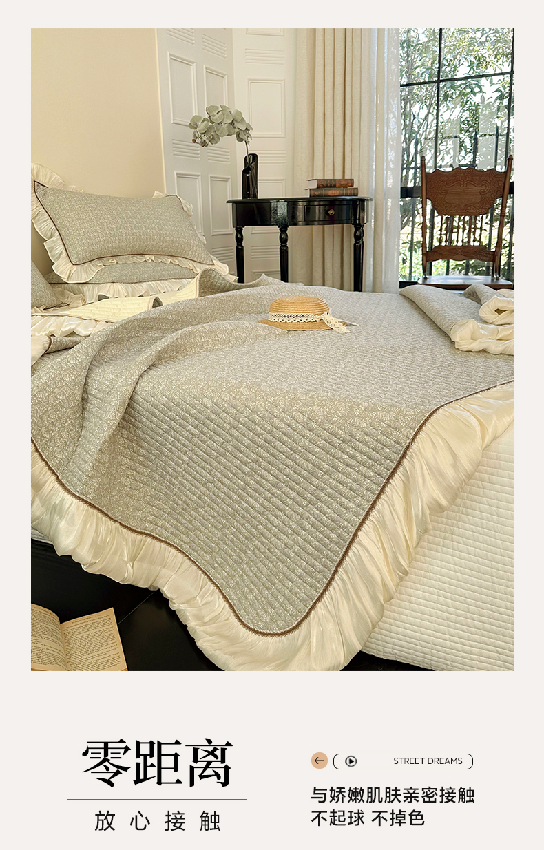 (总)美优兰 2025全棉法式花边双层纱水洗棉花床盖三件套(提供买家秀),组合图仅供参考,半亩花田,波点绿,春意盎然粉,春意盎然绿,玛德琳紫,南风,如画,写意,朱樱