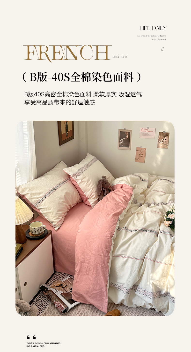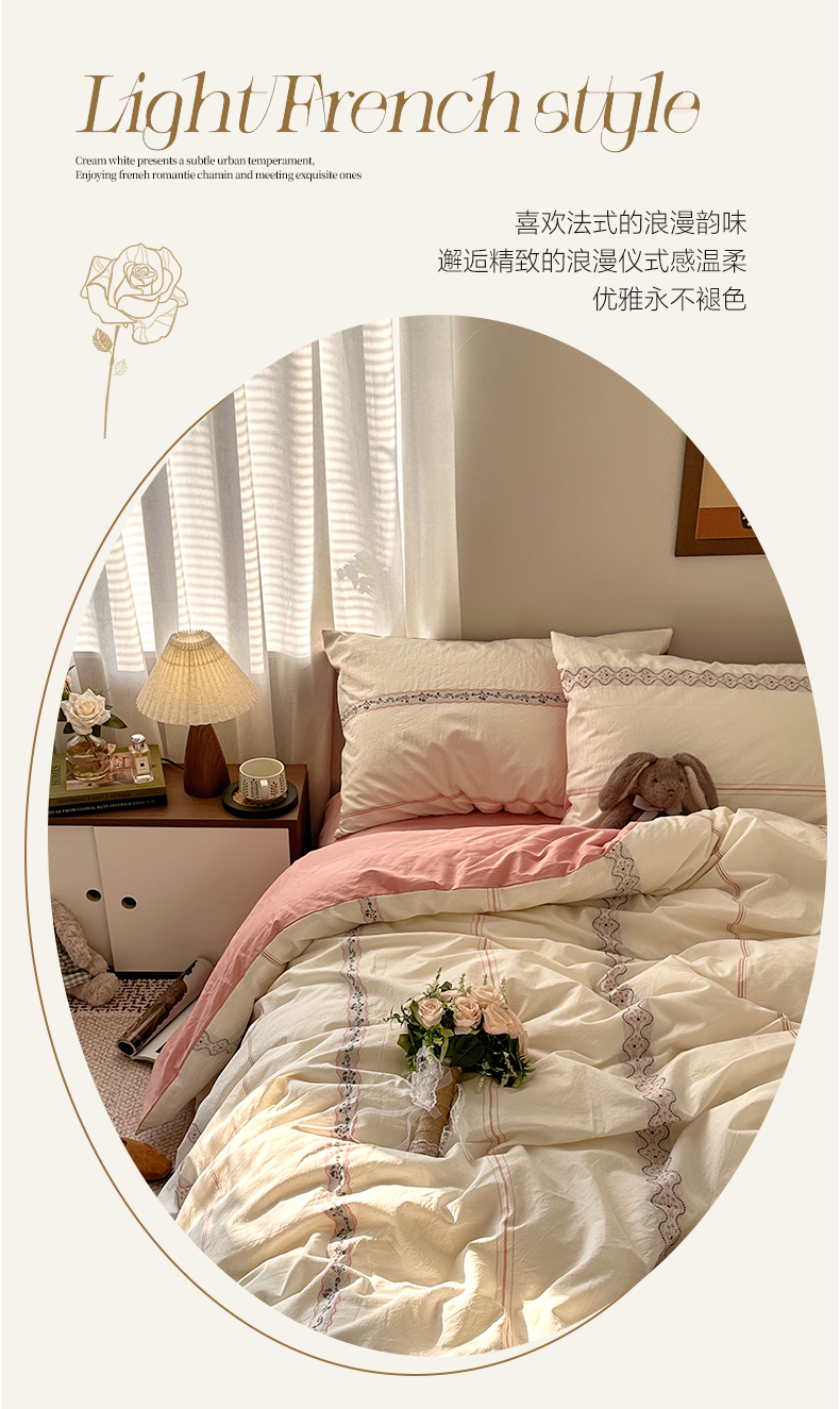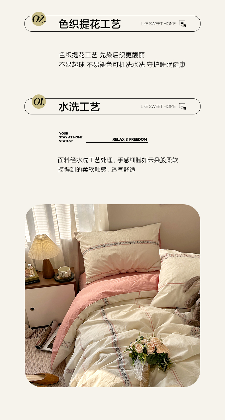 当前位置: 91家纺网 > 商品网购 > 床品套件 > 四件套 > 全棉普通四件套 > 艾咪-Amy ntmy 2026新款法式复古风全棉纯棉色织提花四件套-繁花 繁花粉