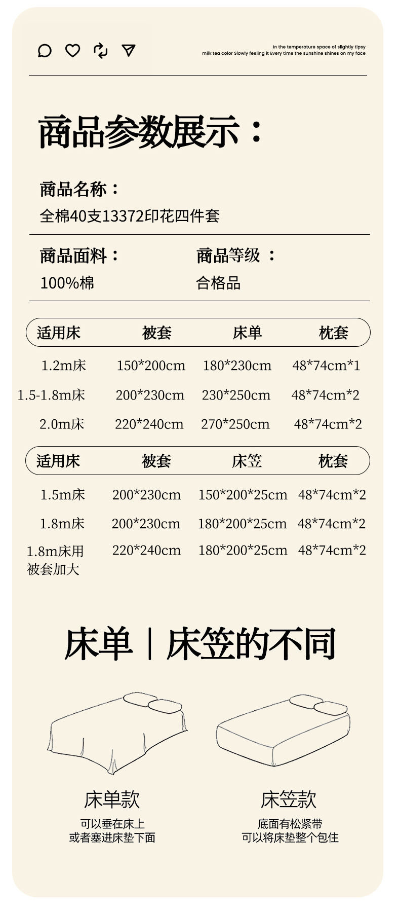 【床笠款】1.5四件套-被套200x230 | ¥125.00 |