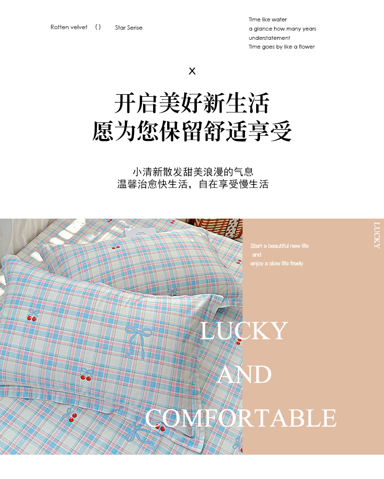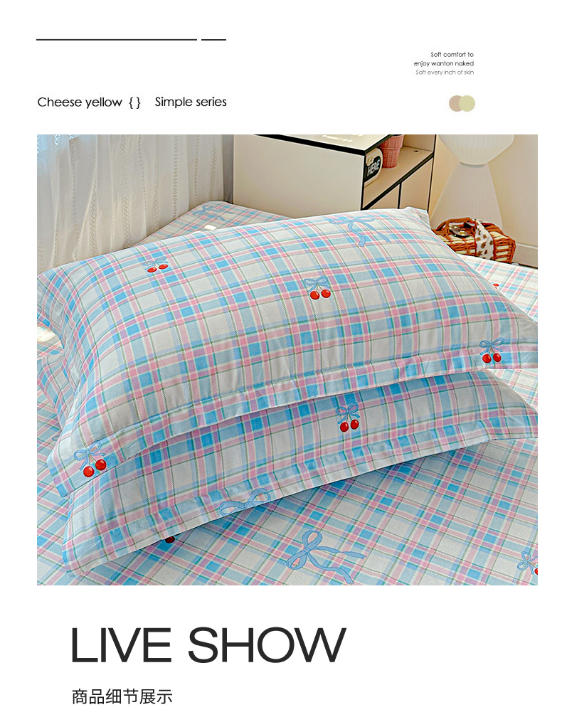 恩泽家纺 2026春夏新款全棉纯棉12868印花四件套及单品系列-单枕套枕套单件 樱桃派