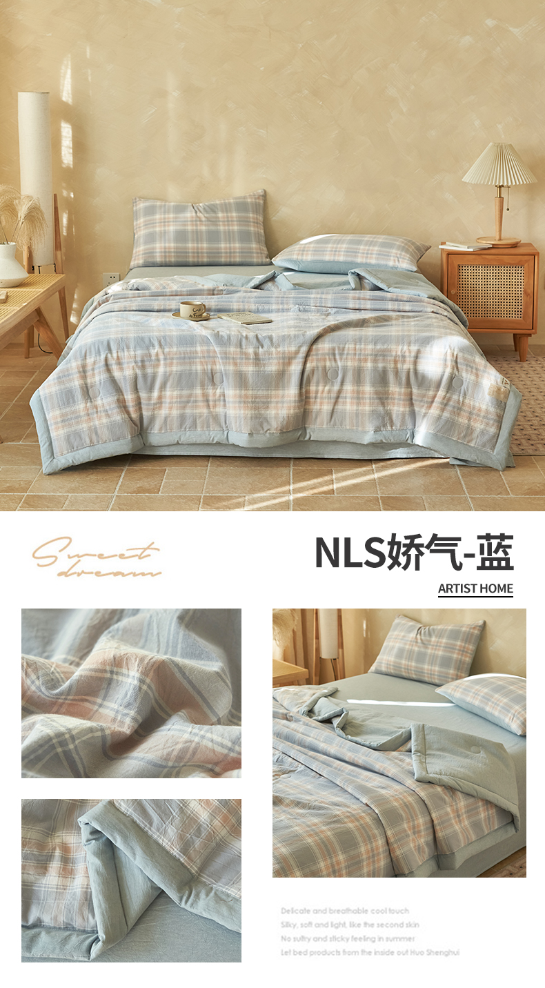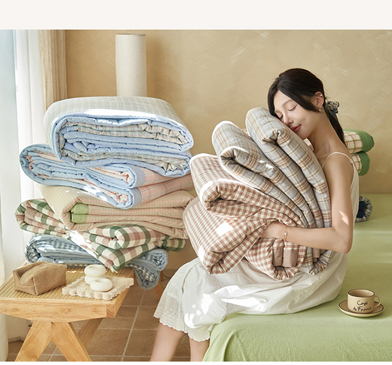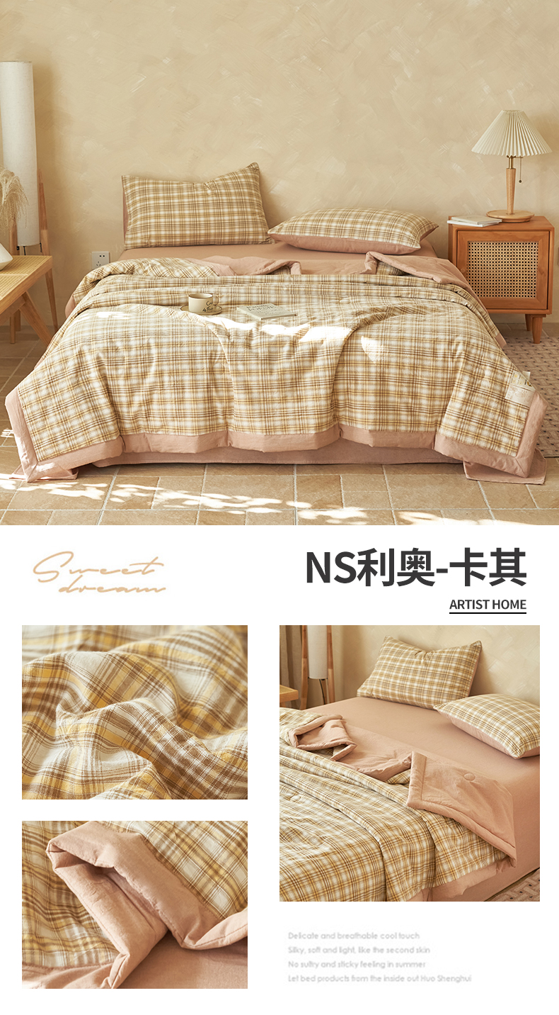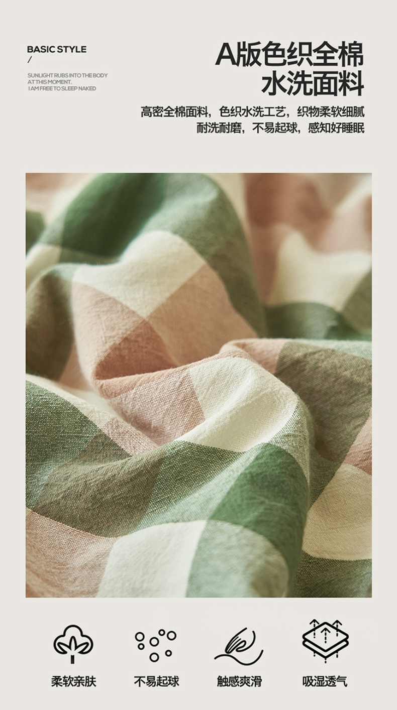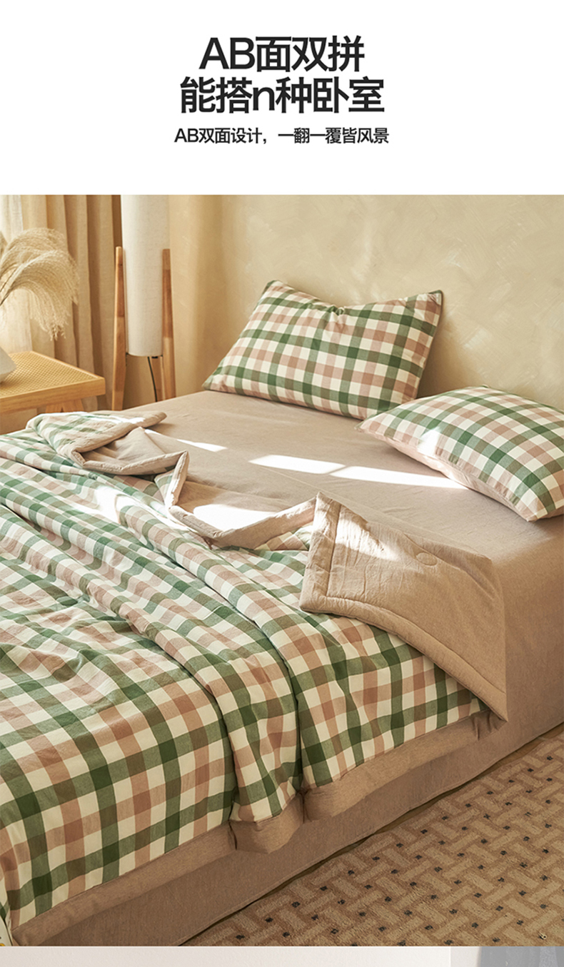 当前位置: 91家纺网 > 商品网购 > 床品套件 > 四件套 > 夏被四件套 > 恒爱家纺 2026新款A类色织全棉水洗夏被四件套 HA绿棕格
