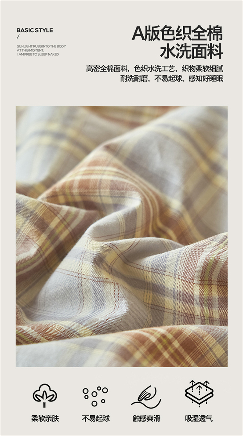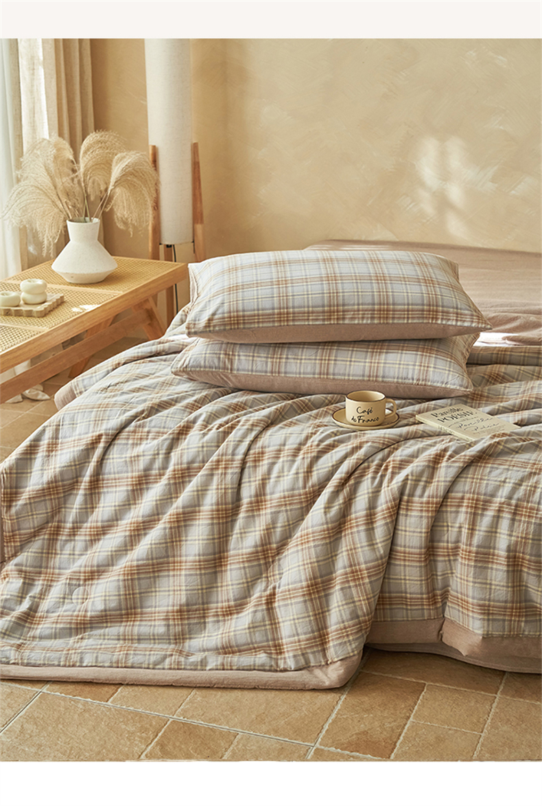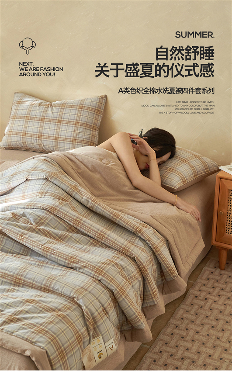当前位置: 91家纺网 > 商品网购 > 床品套件 > 四件套 > 夏被四件套 > 恒爱家纺 2026新款A类色织全棉水洗夏被四件套 NS春野-咖