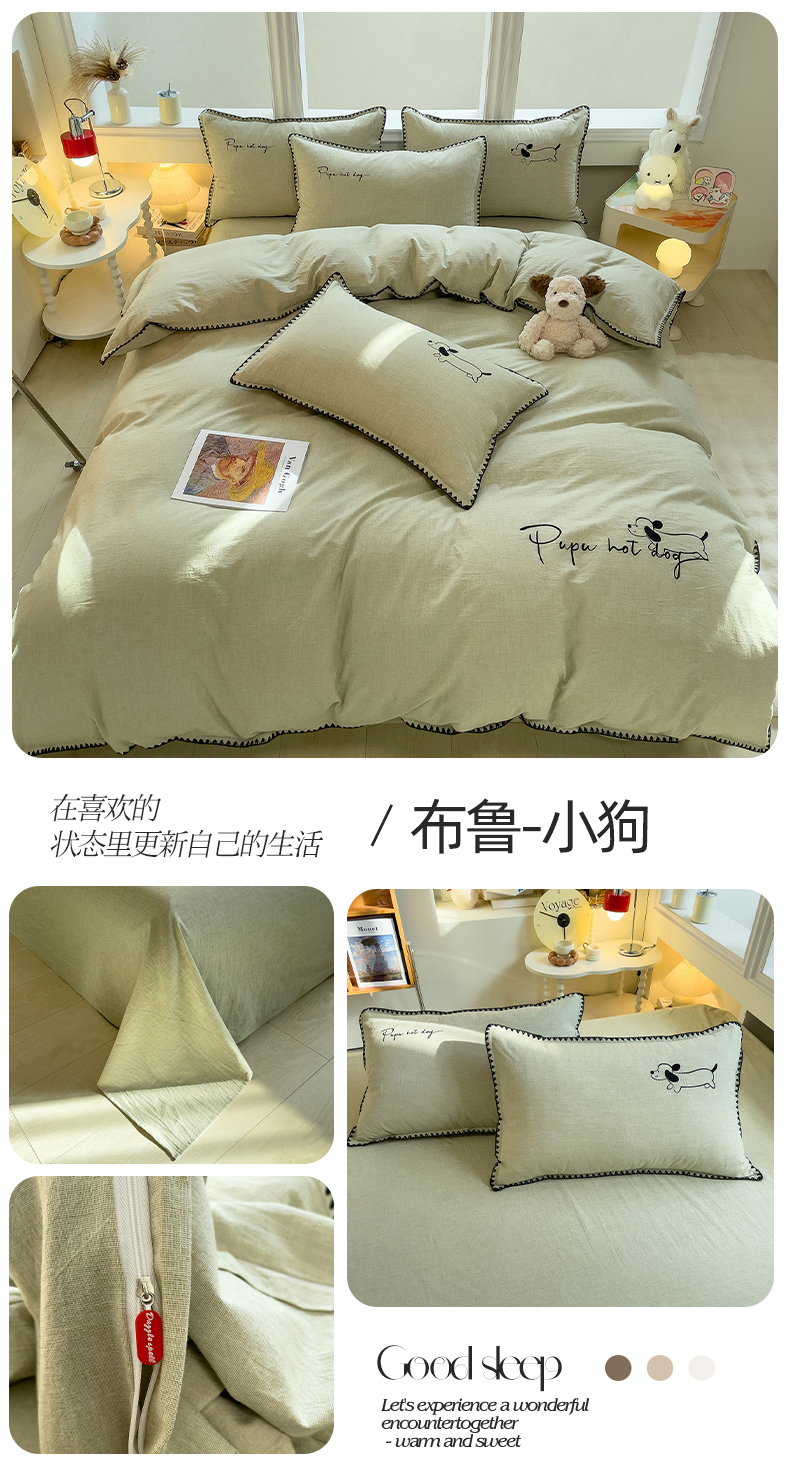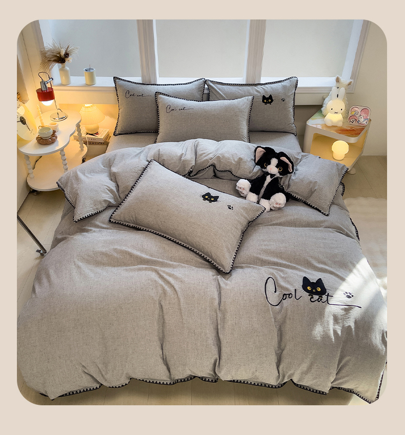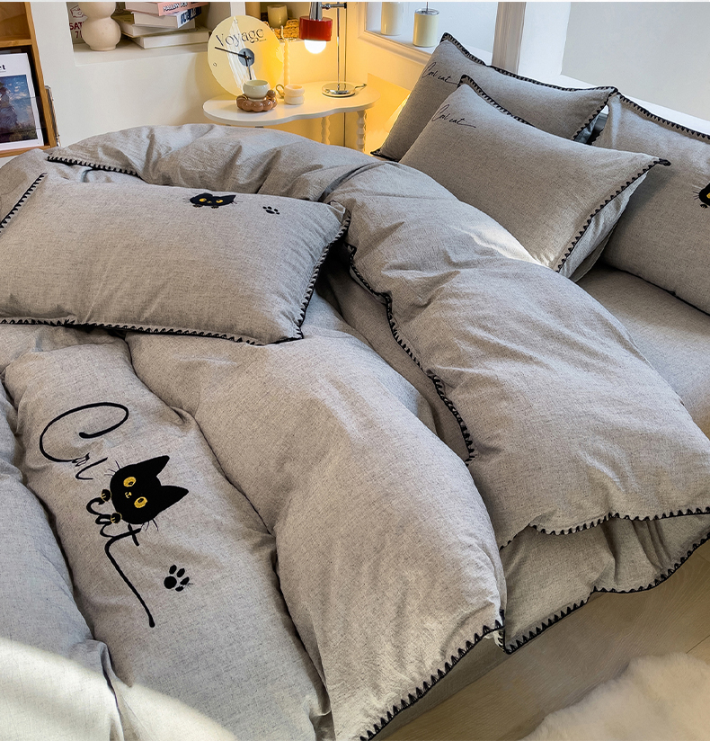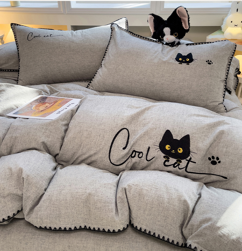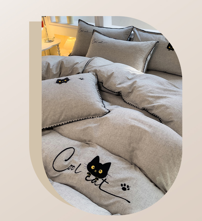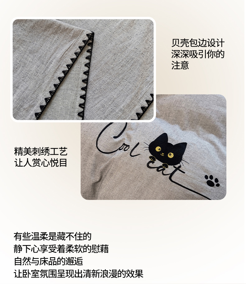 当前位置: 91家纺网 > 商品网购 > 床品套件 > 四件套 > 其它四件套 > 炫拼家纺 2026新款A类棉麻刺绣卡通贝壳边四件套-布鲁系列 布鲁-小猫