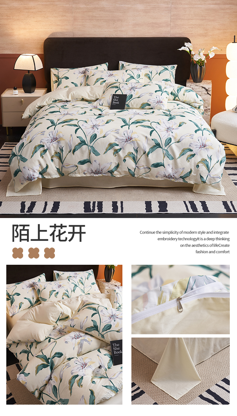 恒爱家纺 2026新款全棉12868印花四件套 陌上花开