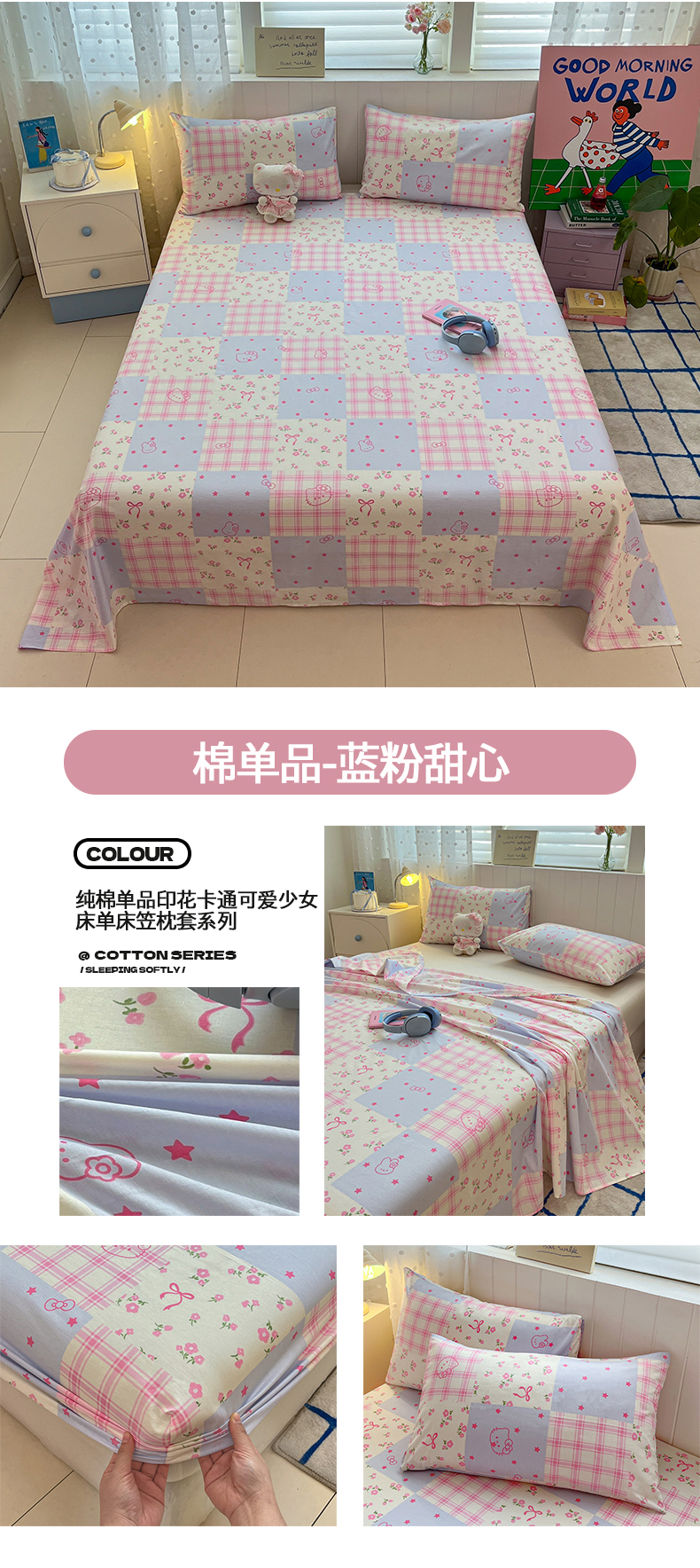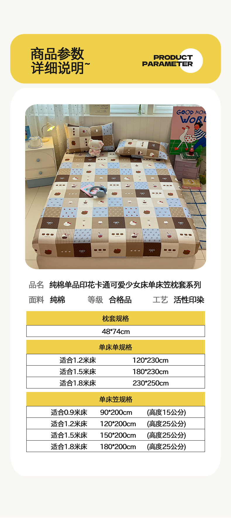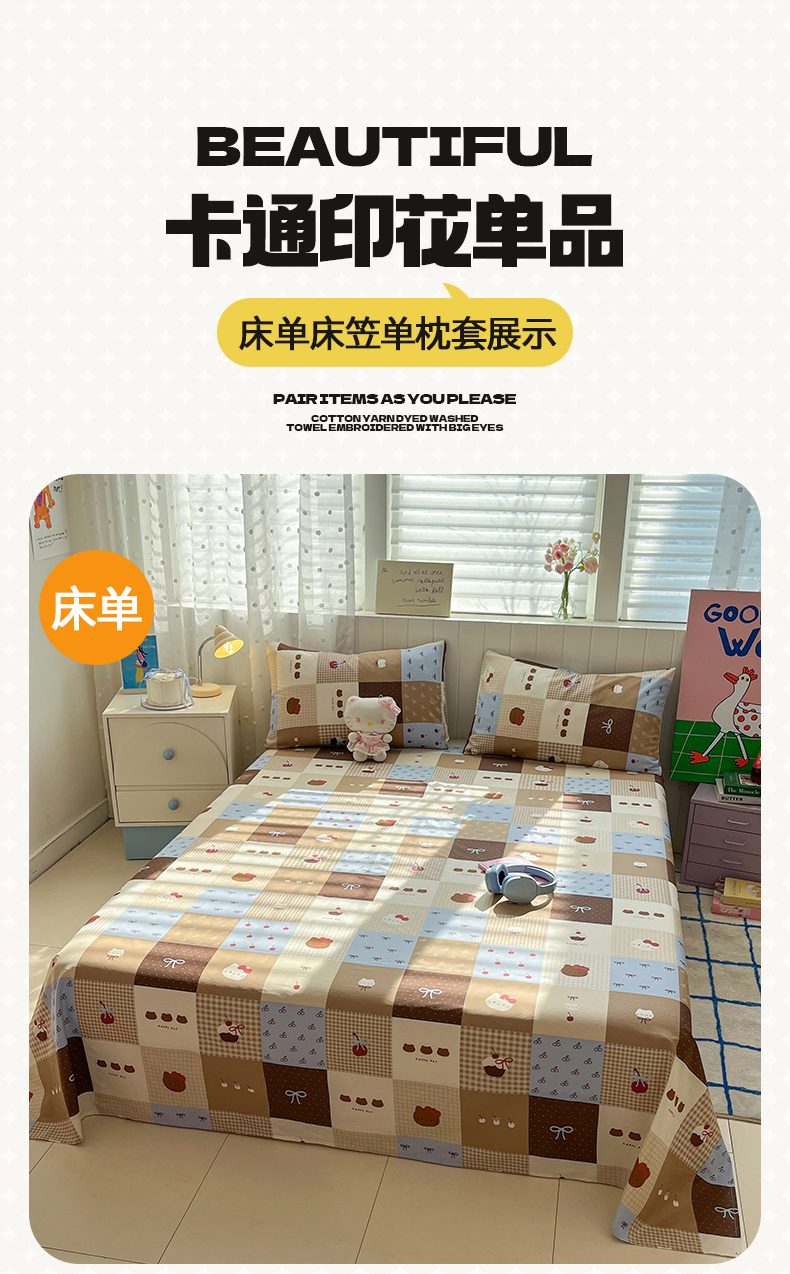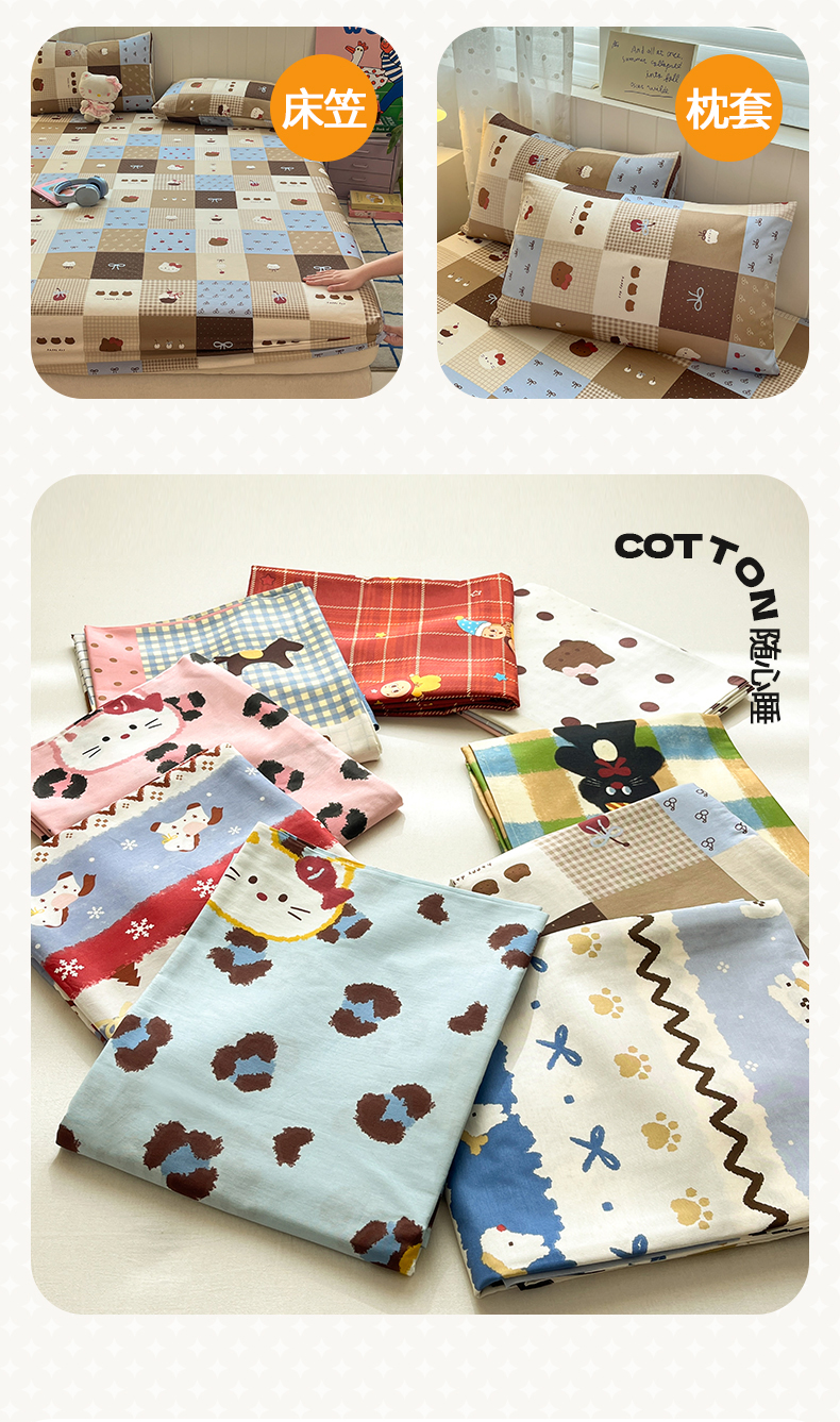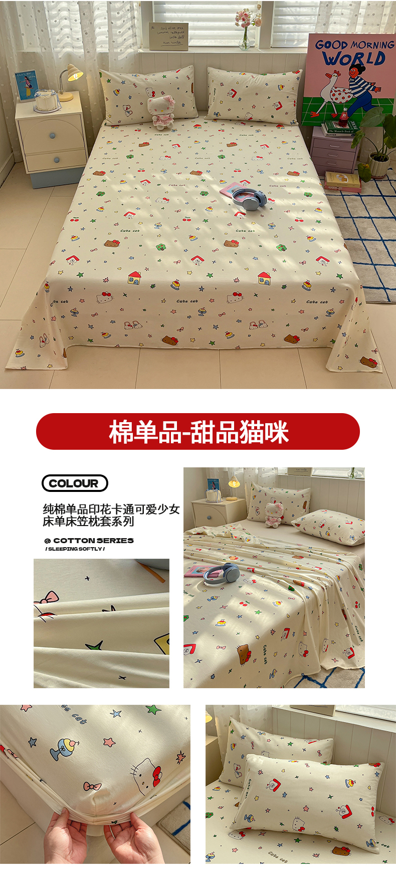 • 91家纺网 家纺一手货源 找家纺 桃子家居 2026新款纯棉全棉单品印花卡通可爱少女床单床笠枕套系列 棉单品-可可黑皮猫