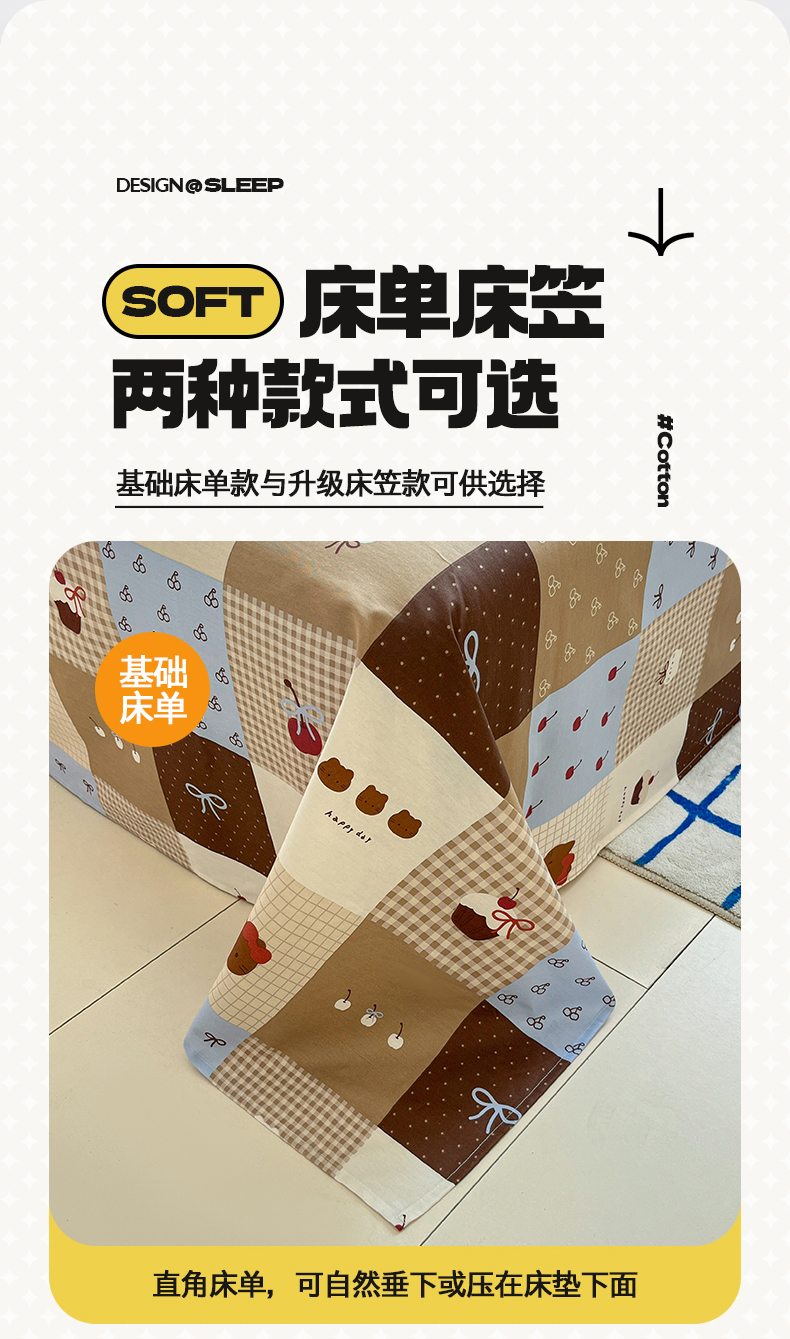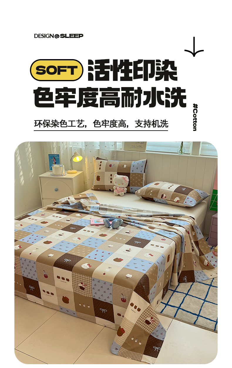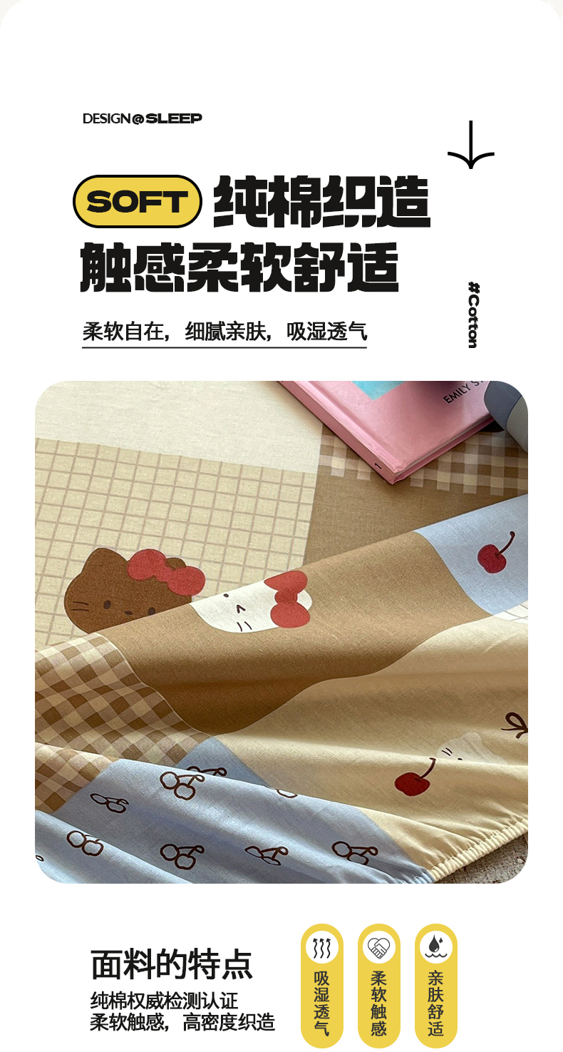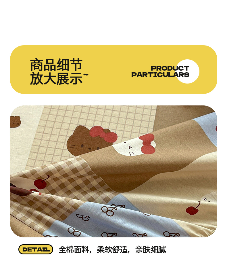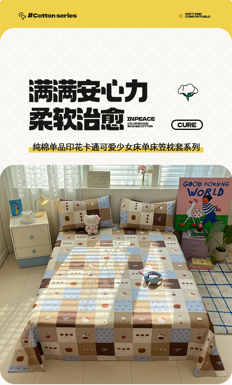 • 91家纺网 家纺一手货源 找家纺 桃子家居 2026新款纯棉全棉单品印花卡通可爱少女床单床笠枕套系列 棉单品-可可黑皮猫