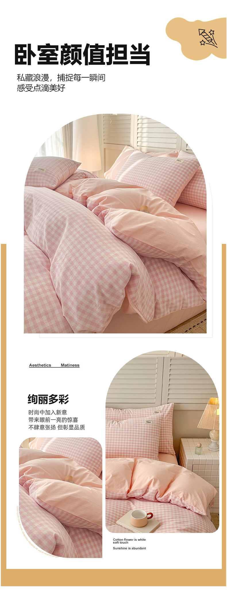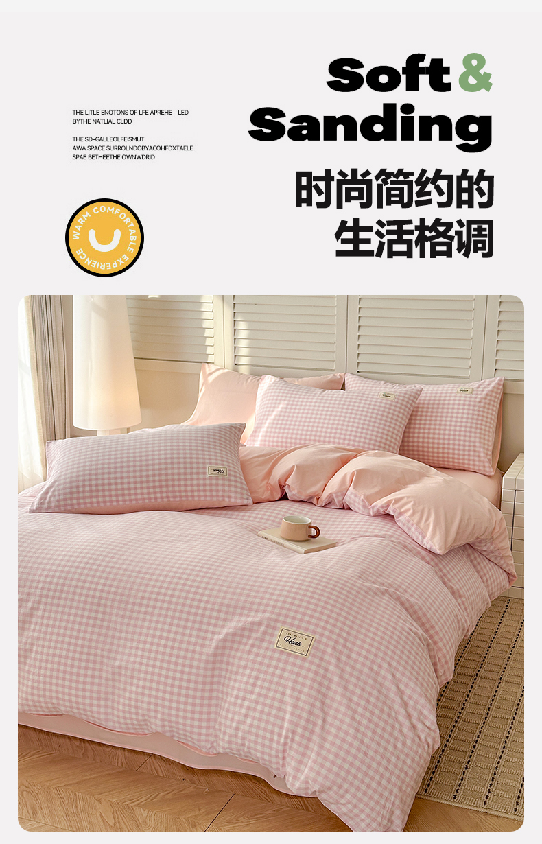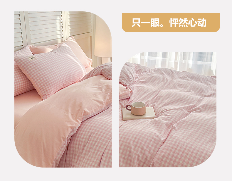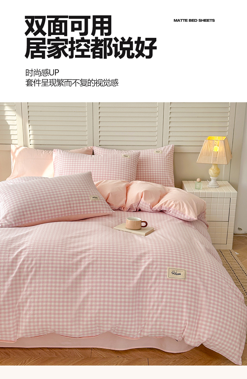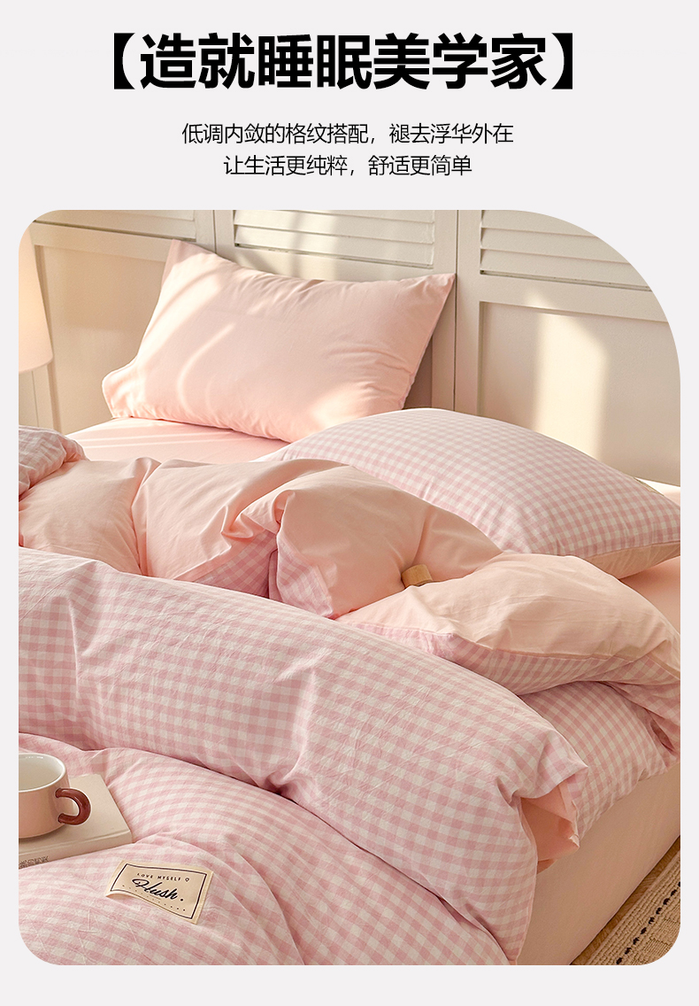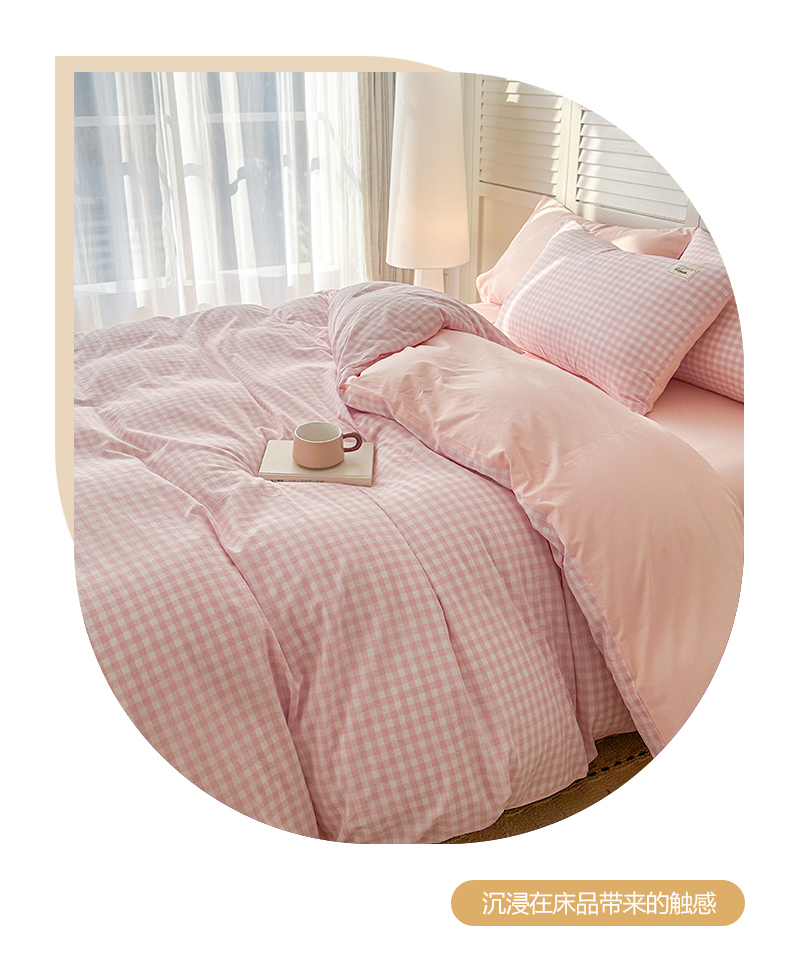 当前位置: 91家纺网 > 商品网购 > 床品套件 > 四件套 > 全棉普通四件套 > 木子家纺 2026春夏新款色织全棉纯棉四件套 小格-浅粉