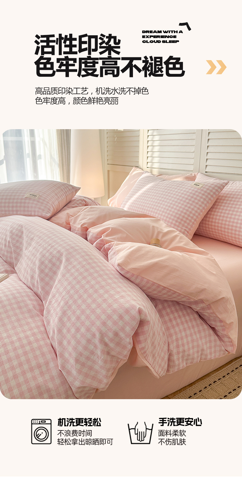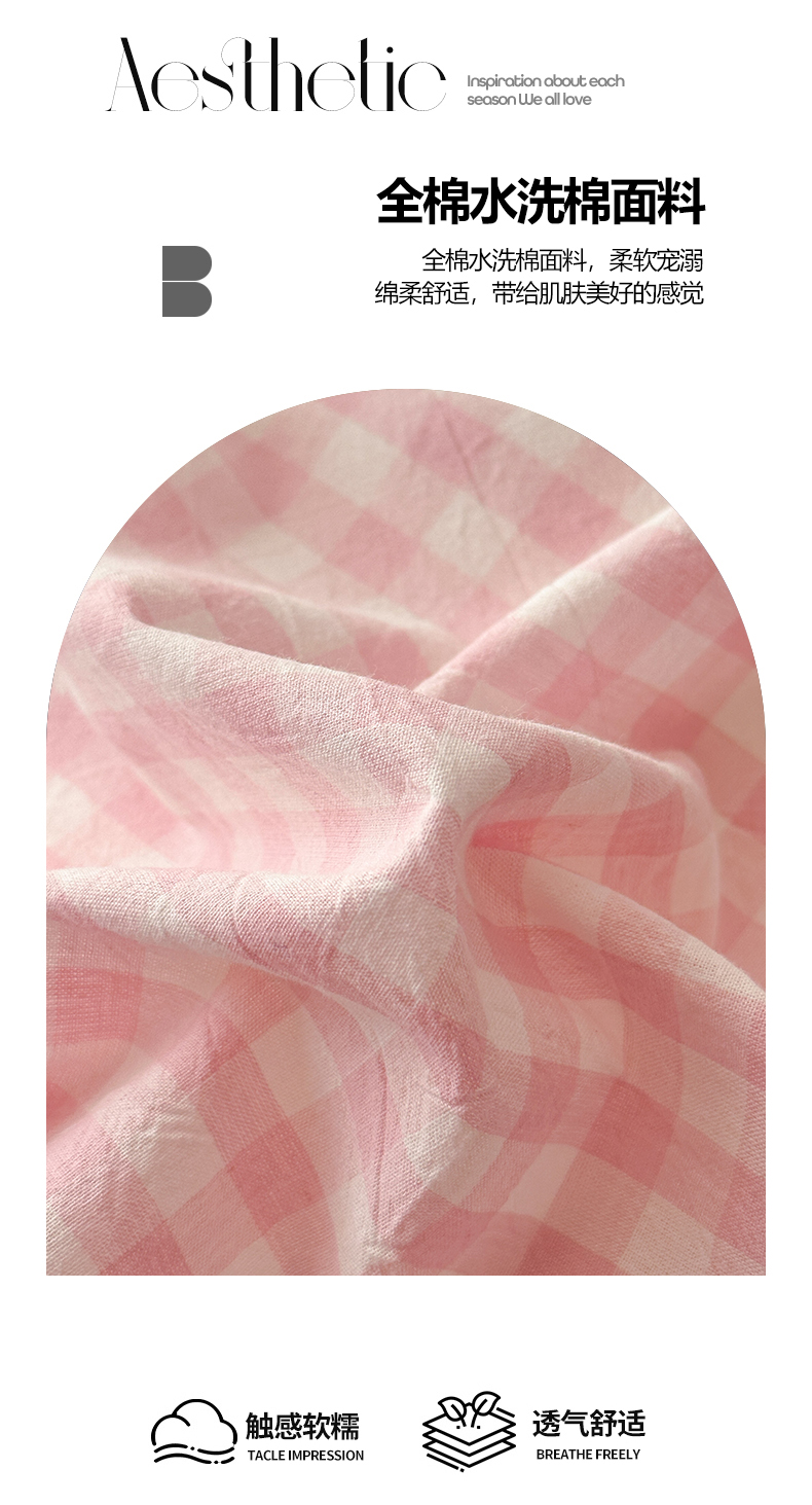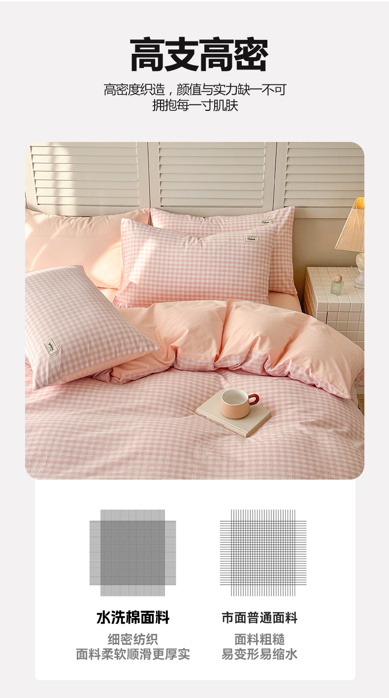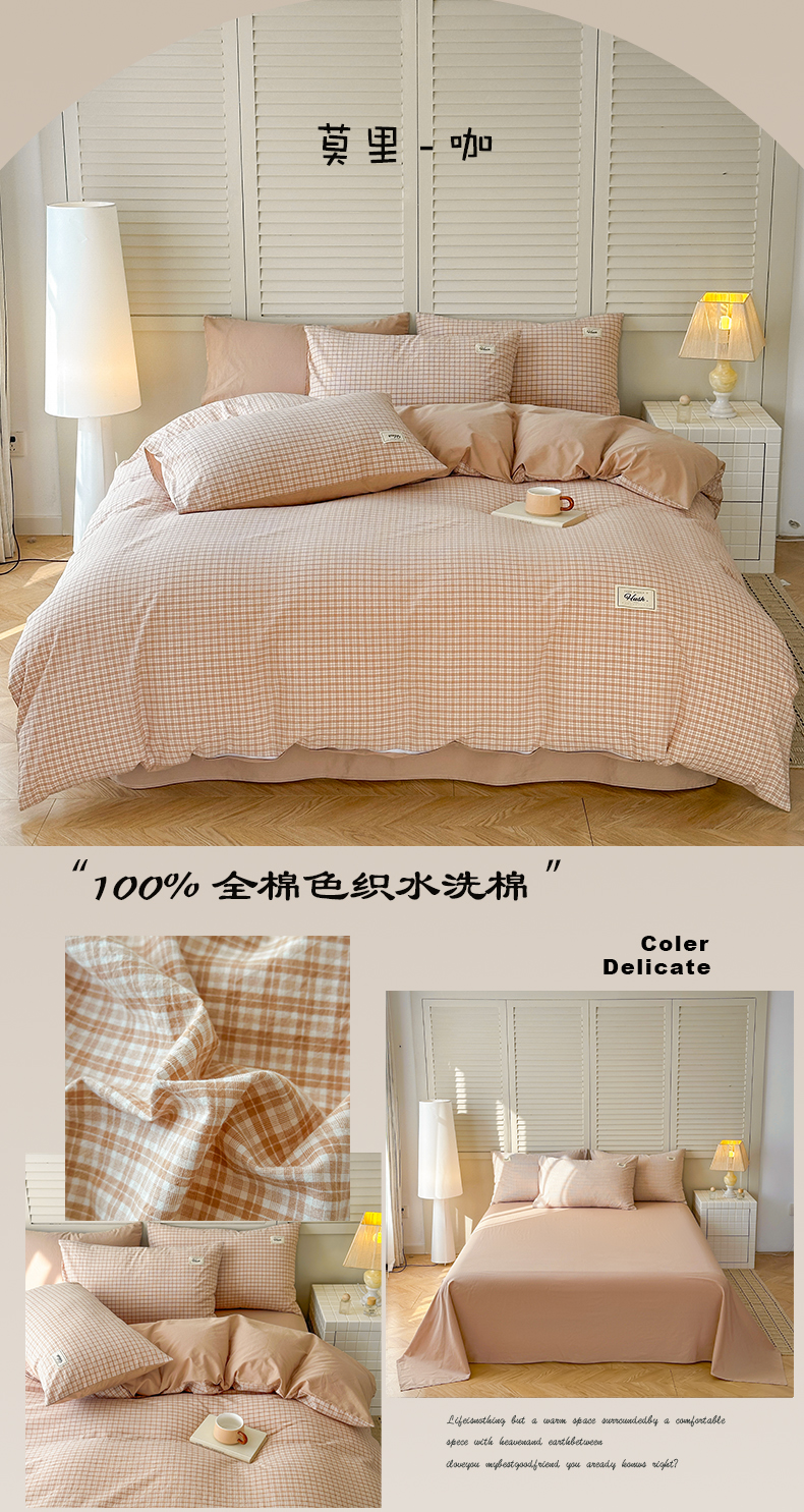 当前位置: 91家纺网 > 商品网购 > 床品套件 > 四件套 > 全棉普通四件套 > 木子家纺 2026春夏新款色织全棉纯棉四件套 小格-浅粉