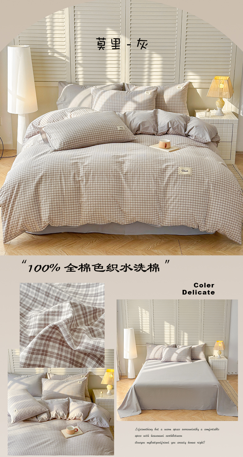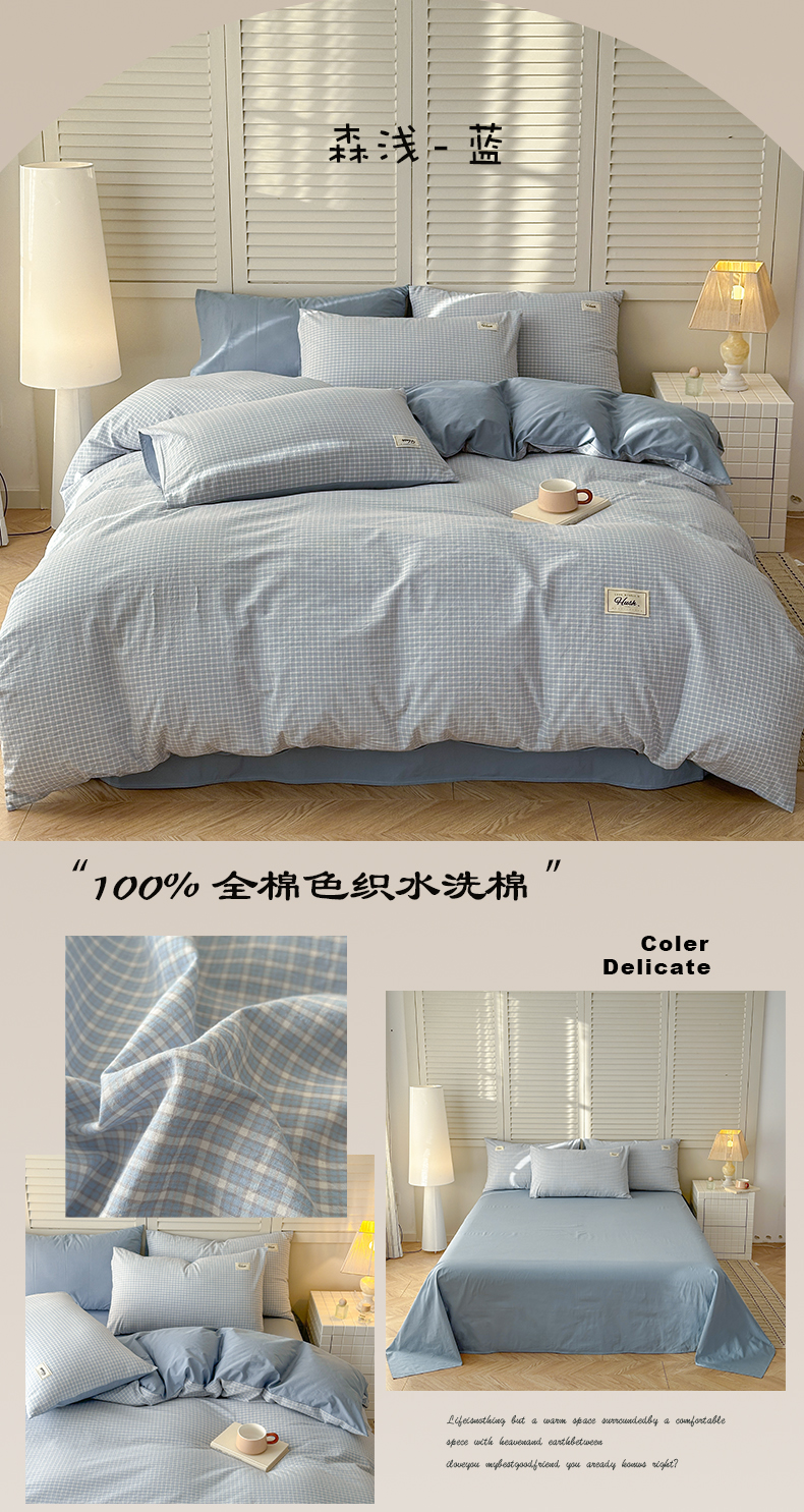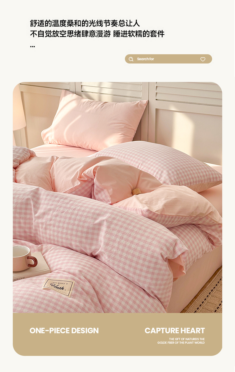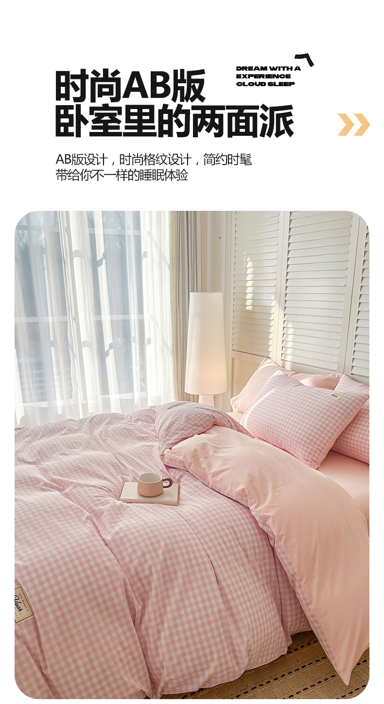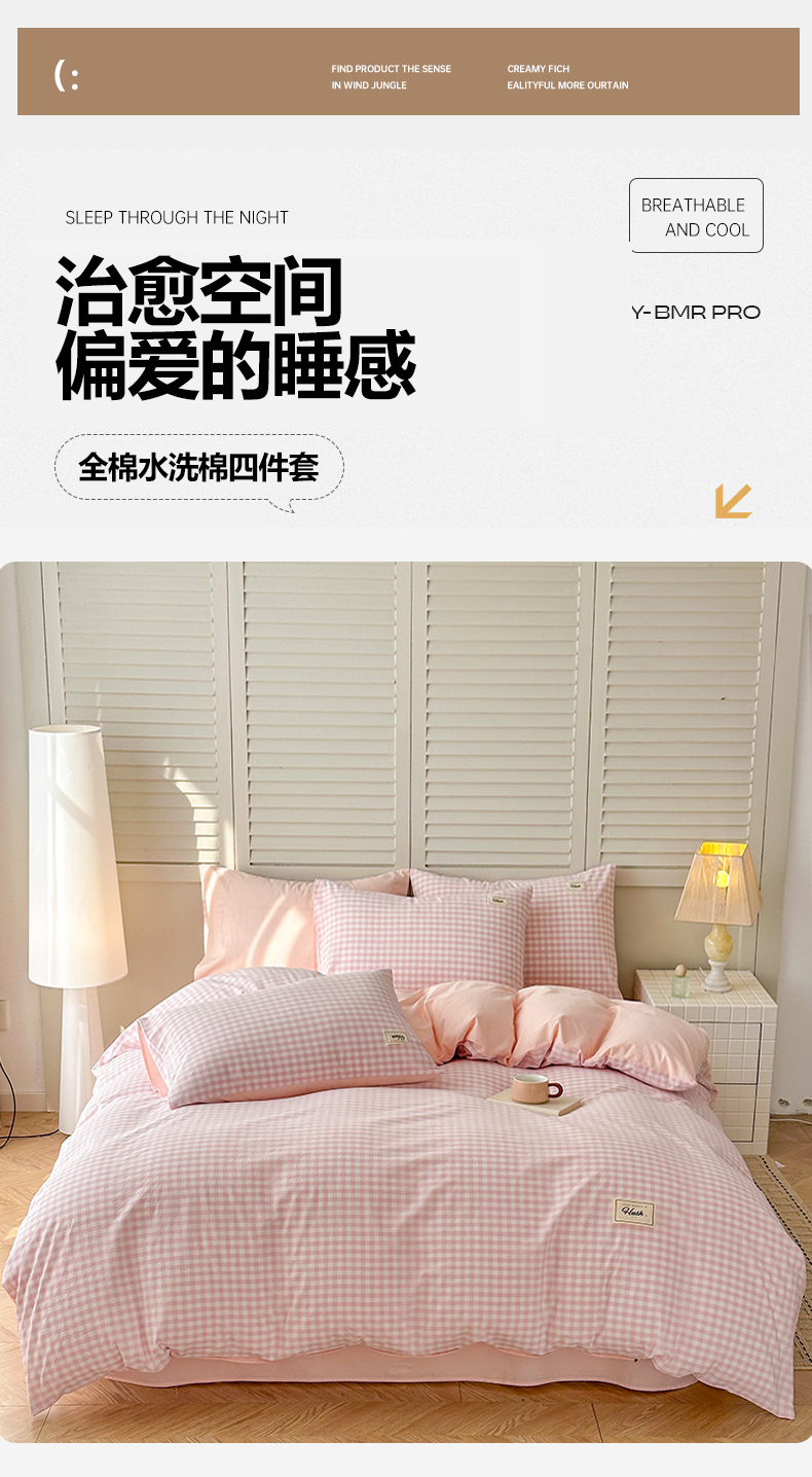 当前位置: 91家纺网 > 商品网购 > 床品套件 > 四件套 > 全棉普通四件套 > 木子家纺 2026春夏新款色织全棉纯棉四件套 小格-浅粉