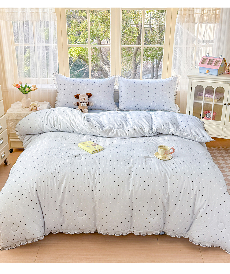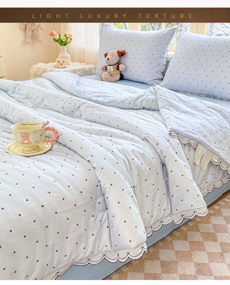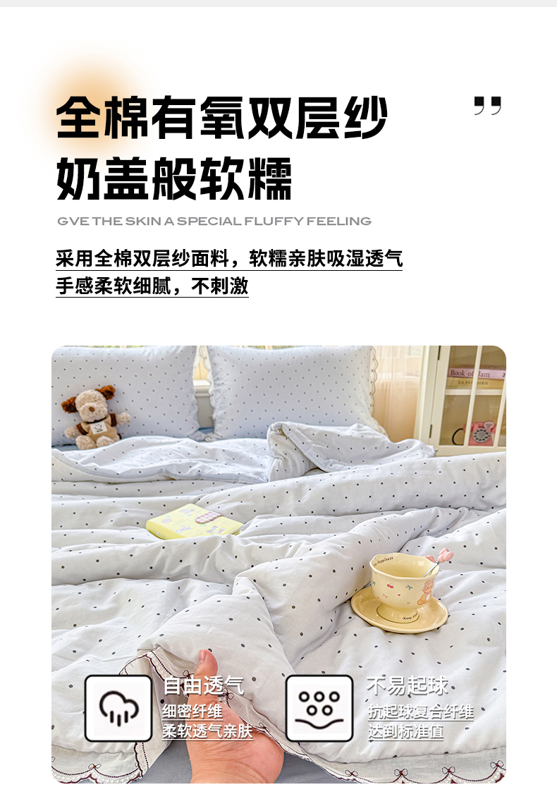 被窝家纺 2026新款全棉纯棉有氧双层纱多功能夏被夏凉被空调被四件套 蓝色泡泡