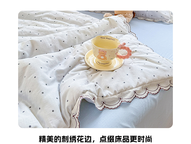 商品名称:被窝家纺 2026新款全棉纯棉有氧双层纱多功能夏被夏凉被空调被四件套 蓝色泡泡