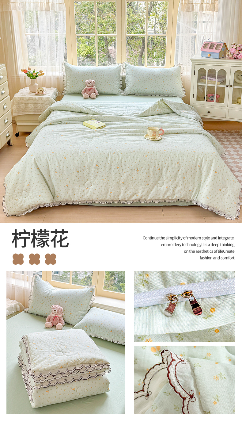 (总)被窝家纺 2026新款全棉纯棉有氧双层纱多功能夏被夏凉被空调被四件套,车厘子,费尔岛小熊,蓝风铃,蓝色泡泡,绿玫瑰,萌星,柠檬花,泡芙狗,清桃-粉,小野花,樱桃甜心,紫罗兰