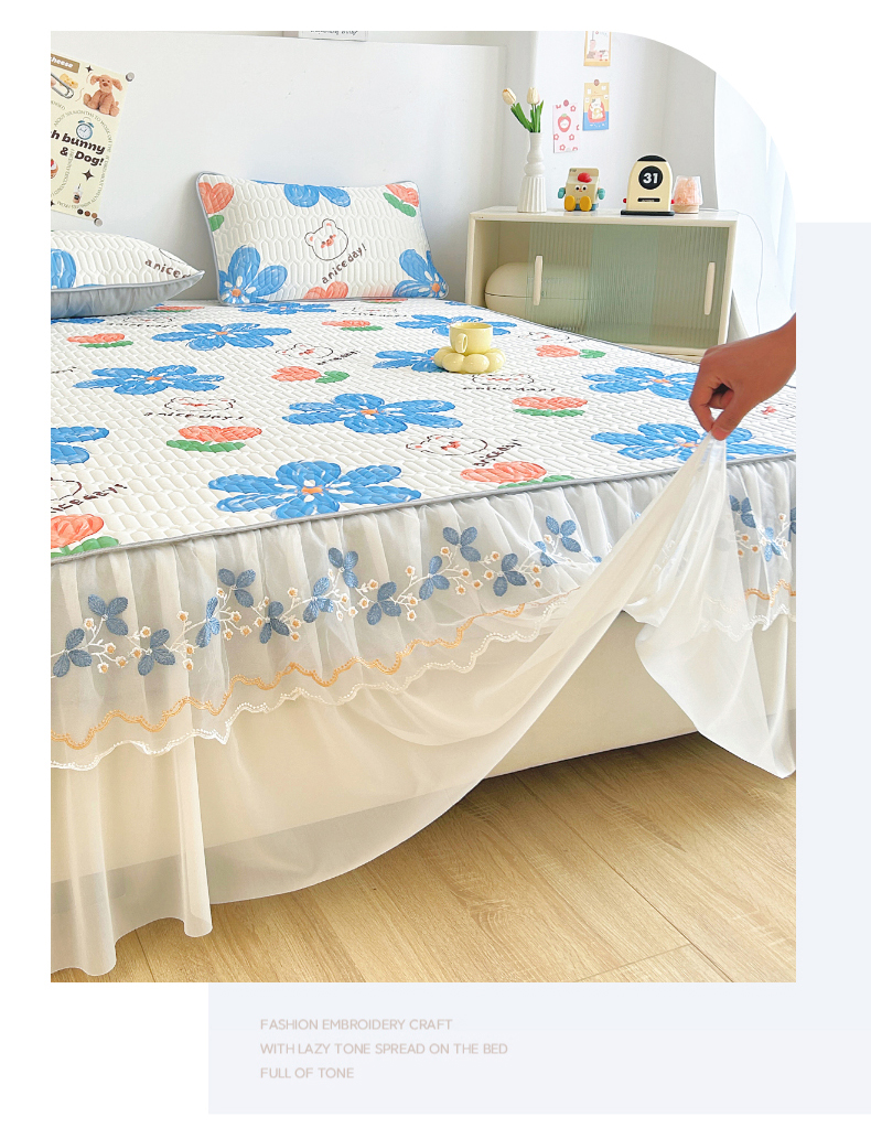 (总)能好家纺 2026春夏新款小清新乳胶床裙款凉席席子