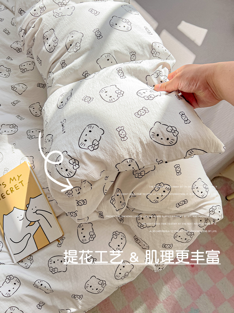 当前位置: 91家纺网 > 商品网购 > 床品套件 > 四件套 > 双层纱四件套 > 优选 2026新款加厚云感棉双层纱四件套小碎花被套床单床笠款学生三件套新款直播爆款 猫咪恋人