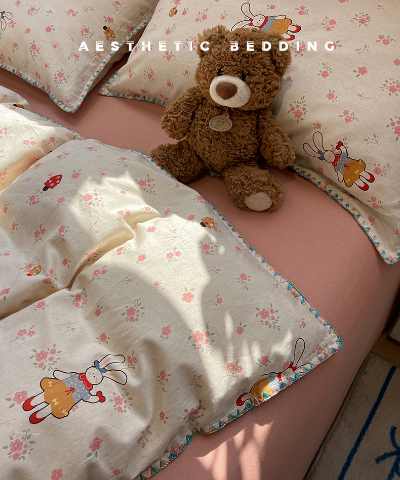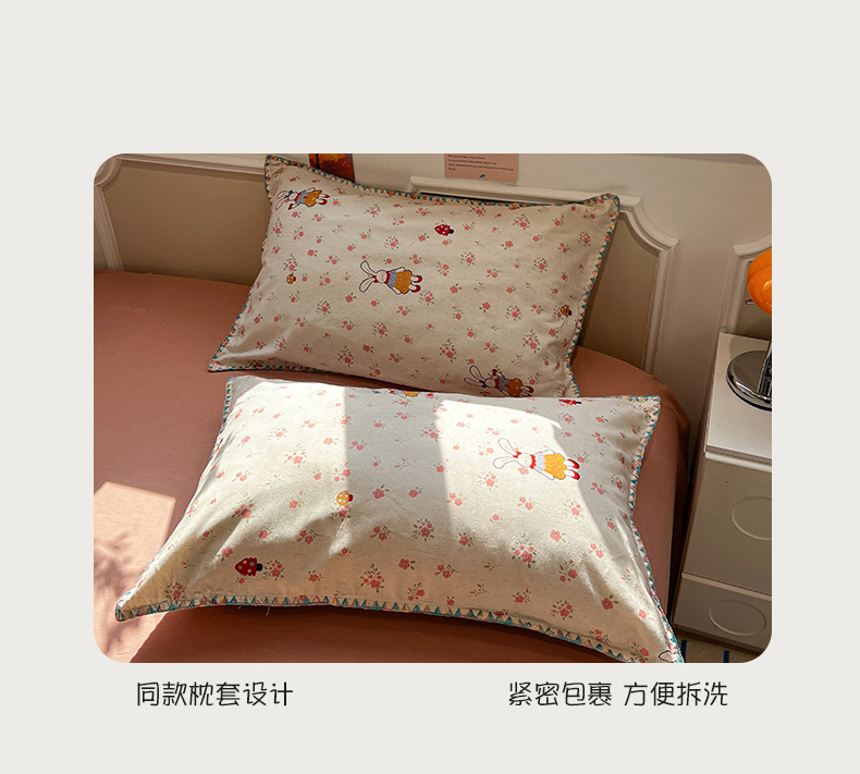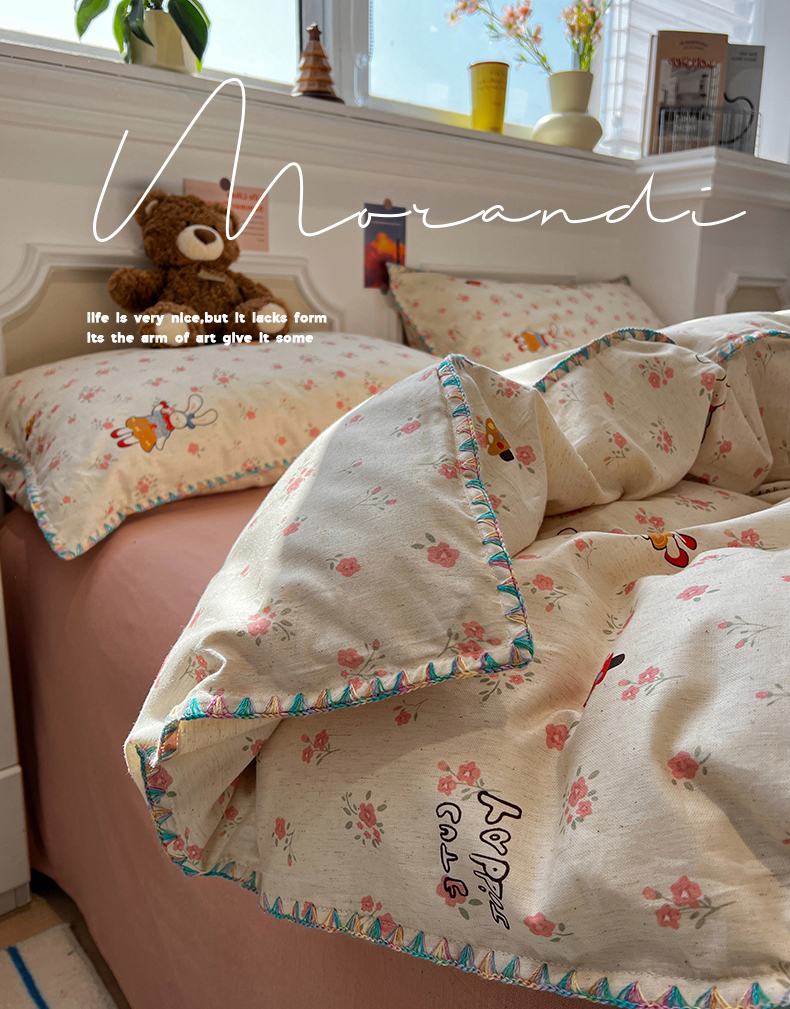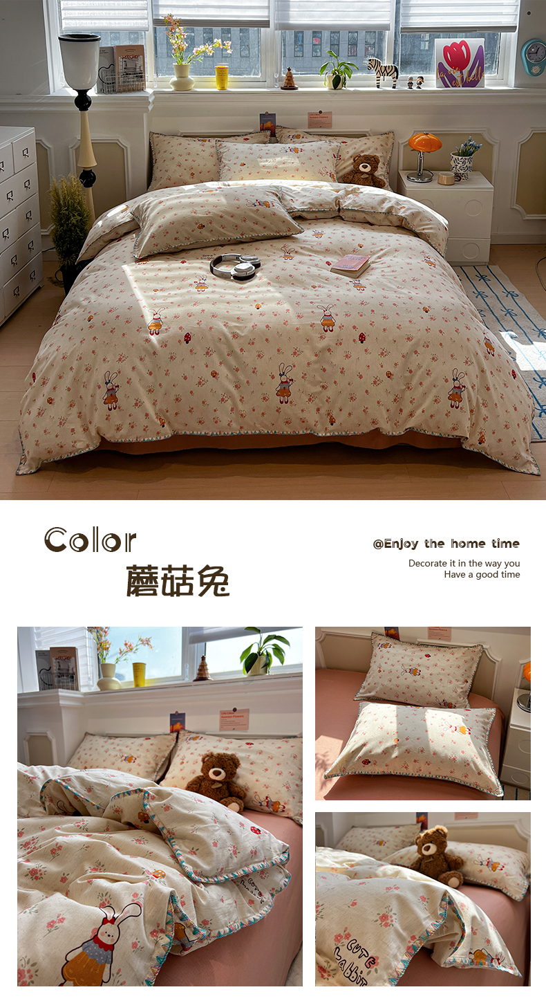 当前位置: 91家纺网 > 商品网购 > 床品套件 > 四件套 > 其它四件套 > 忆生活家纺 2026新款棉麻小清新三角针贝壳边四件套 蘑菇兔