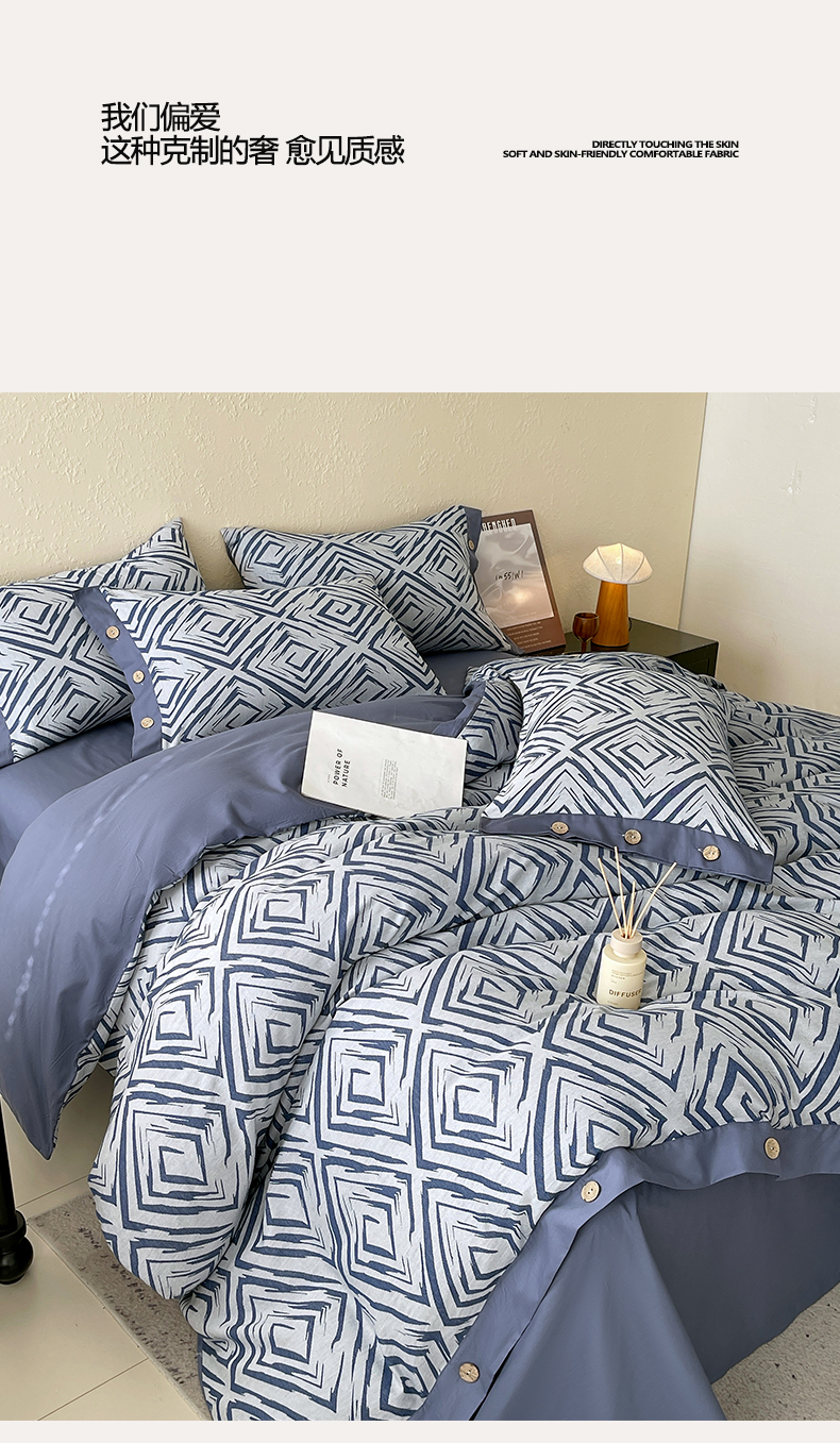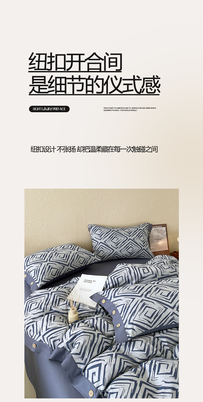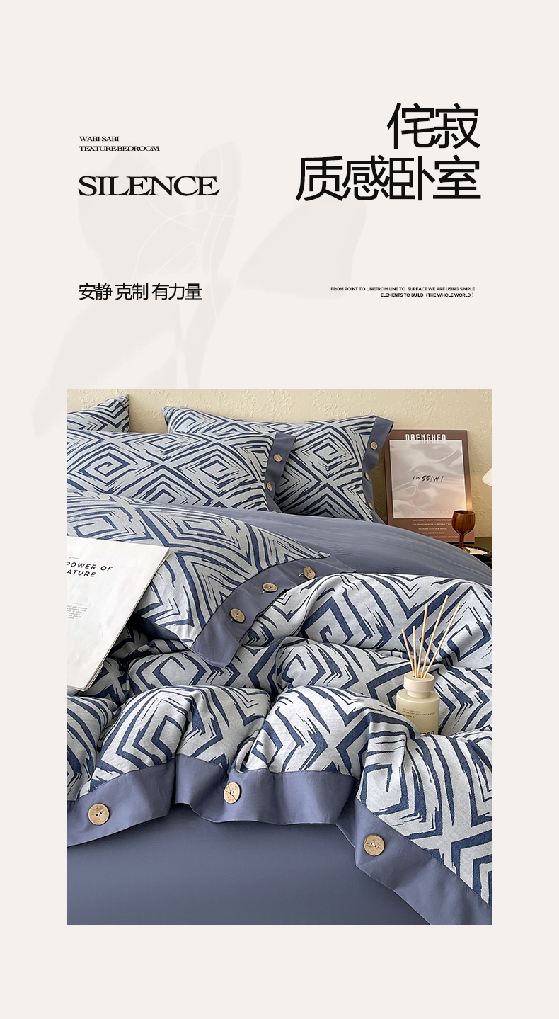 商品名称:帅露家纺 2026新款A类全棉纯棉色织大提花纽扣款四件套 兰音