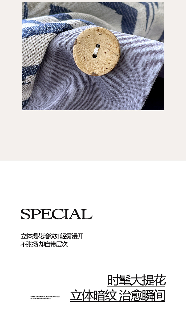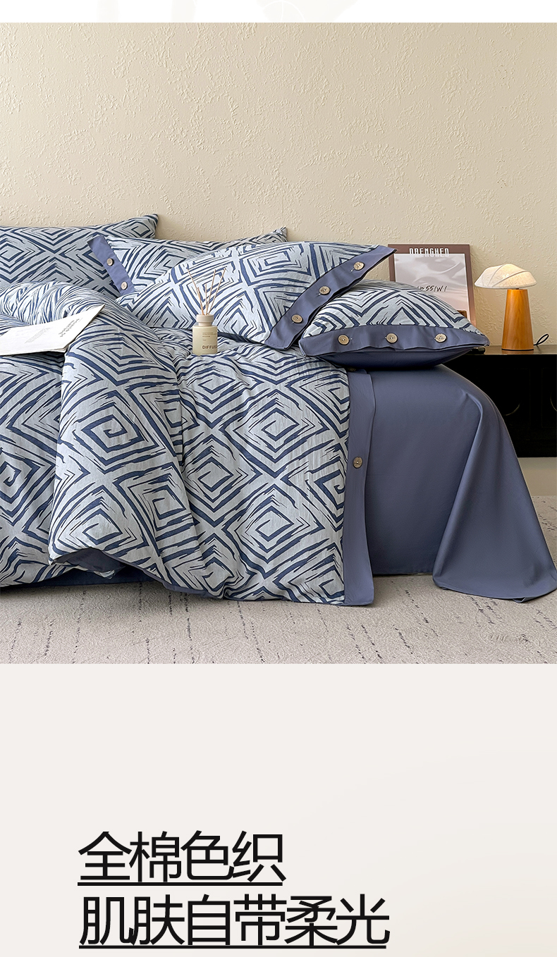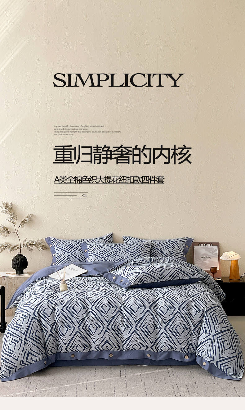 帅露家纺 2026新款A类全棉纯棉色织大提花纽扣款四件套 兰音