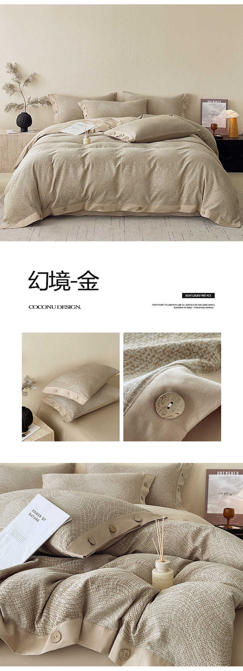 (总)帅露家纺 2026新款A类全棉纯棉色织大提花纽扣款四件套,波浪-绿,布拉格-灰,幻境-金,兰音,魔笛-咖,欧若拉-灰,琴瑟-金,羽魅-粉
