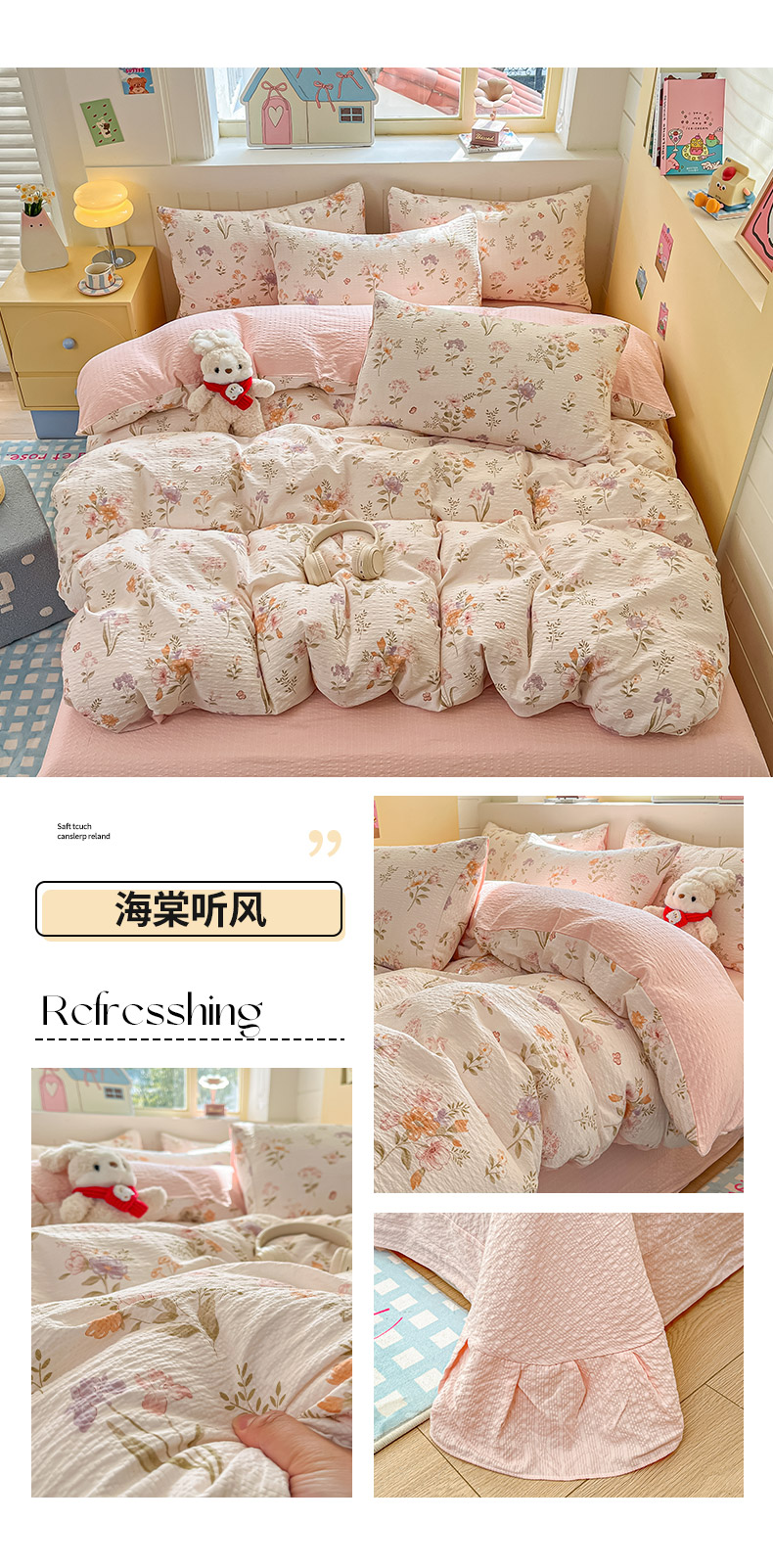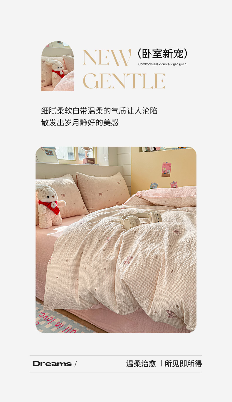 当前位置: 91家纺网 > 商品网购 > 床品套件 > 四件套 > 其它四件套 > 金梦拉家纺 2026新款A类高品质高克重超柔泡芙纱泡泡纱小清新四件套 小马哒哒