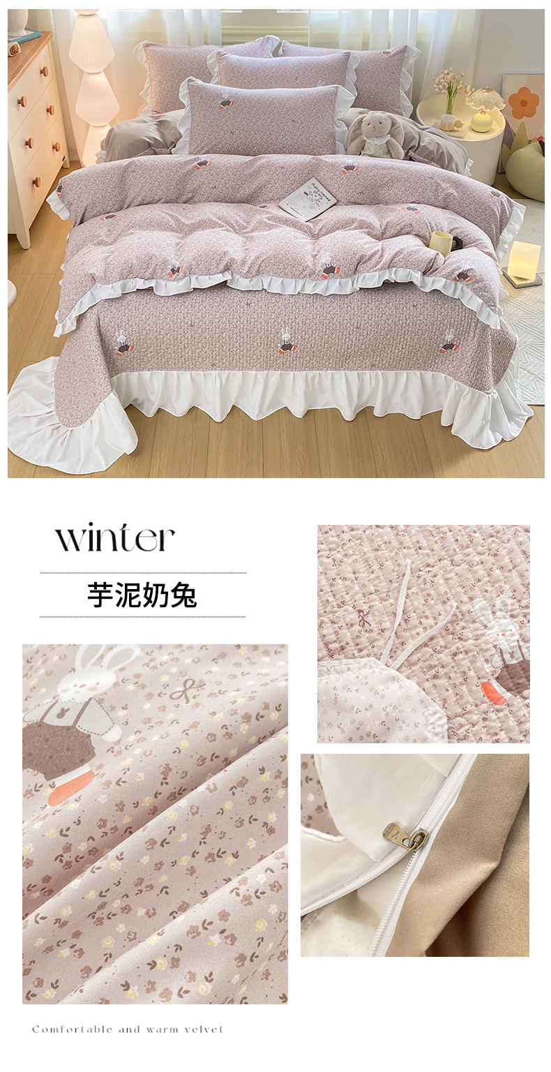 当前位置: 91家纺网 > 商品网购 > 床品套件 > 四件套 > 水洗棉四件套 > 优贝家纺 2026春夏新款韩系小清新水洗棉古法棉夹棉床盖四件套-风格一 芋泥奶兔