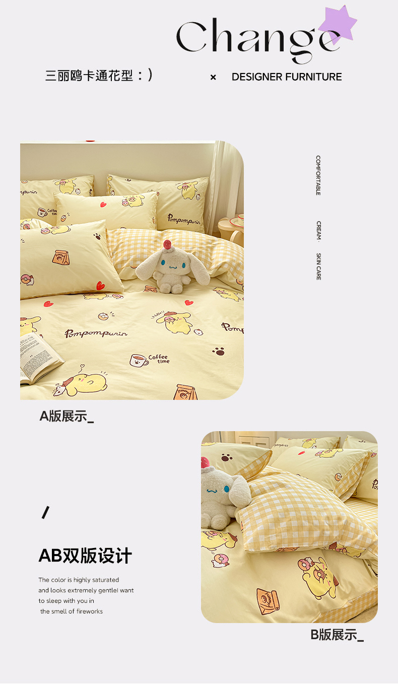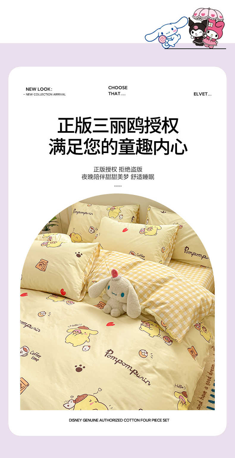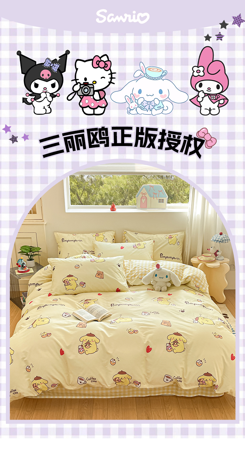 当前位置: 91家纺网 > 商品网购 > 床品套件 > 四件套 > 全棉普通四件套 > 博雅 2026新款三丽鸥全棉纯棉小版印花四件套 小版-甜甜圈布丁狗