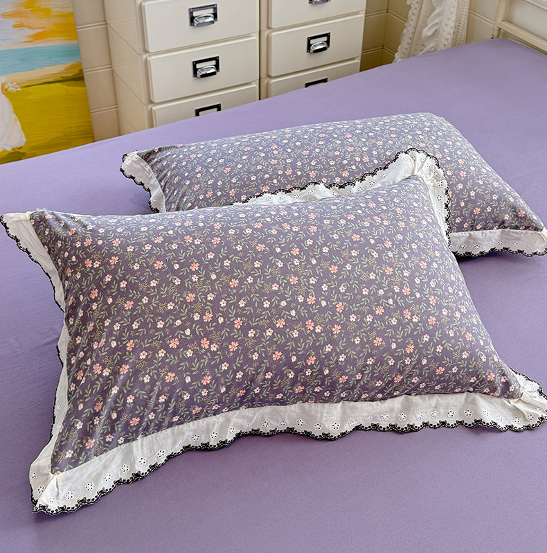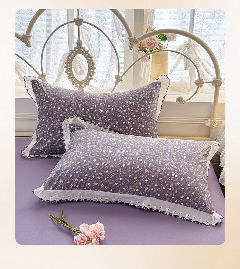 沐珩家纺 2026新款古法水洗仿棉云感棉印花单枕套 古法-紫藤漫想