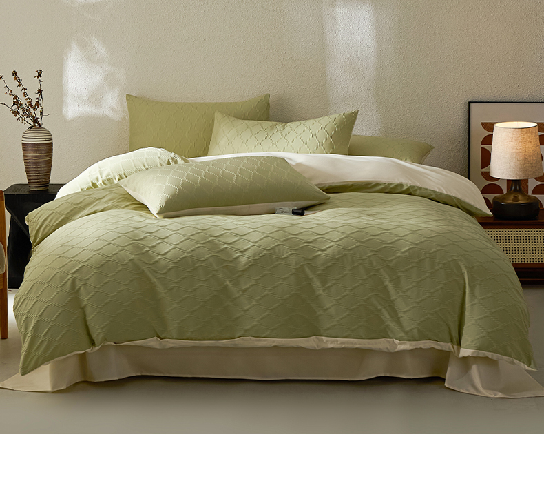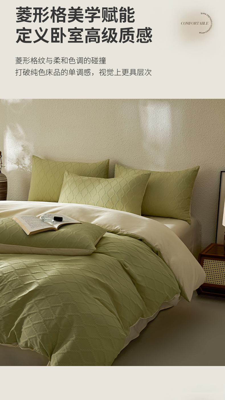 当前位置: 91家纺网 > 商品网购 > 床品套件 > 四件套 > 其它四件套 > 悦织湾家纺 2026新款超柔菱形格提花四件套轻奢纯色时尚学生宿舍床单床笠款三四件套单被套 菱形格-果绿+芝士