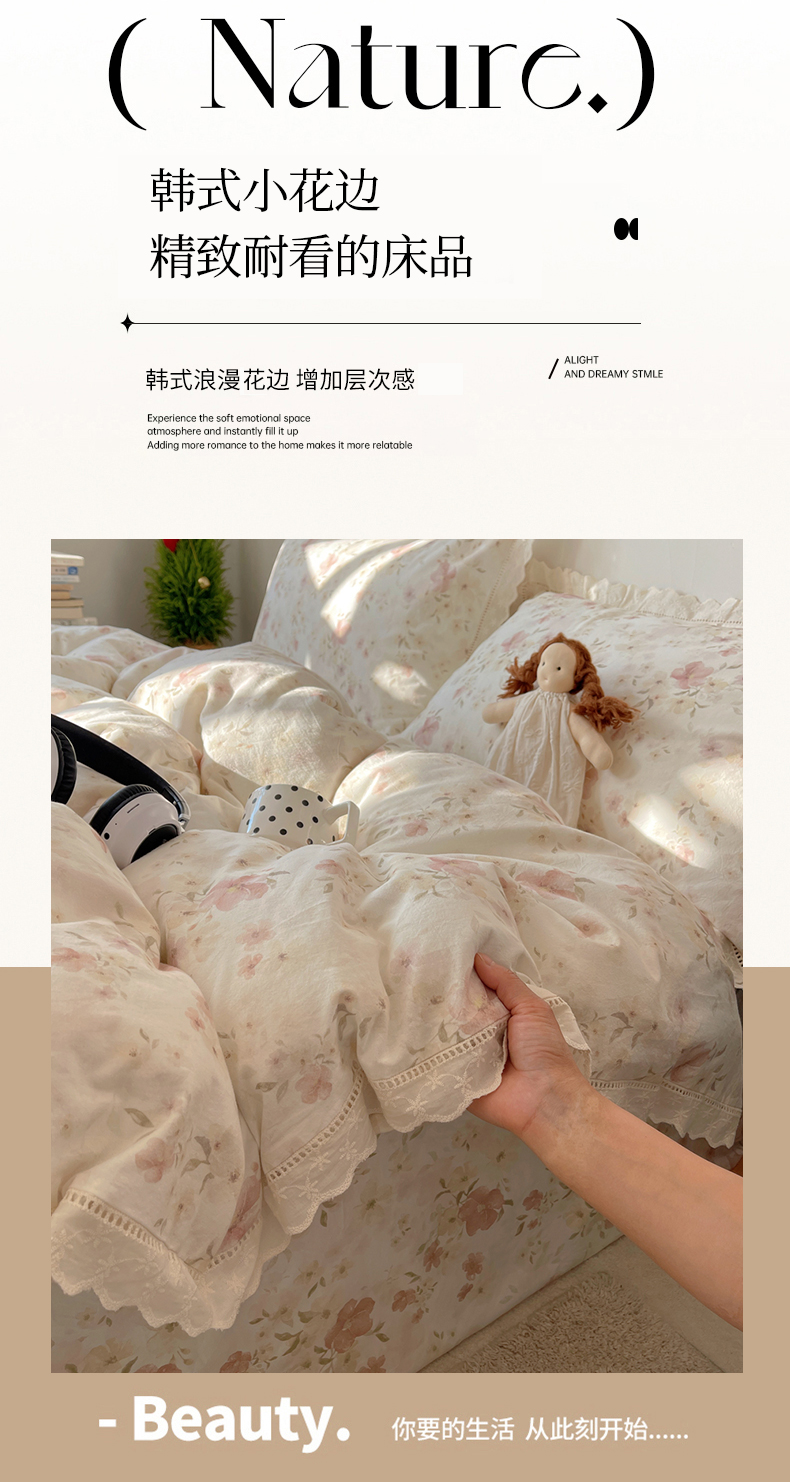 当前位置: 91家纺网 > 商品网购 > 床品套件 > 四件套 > 其它四件套 > 悦织湾家纺 2026新款镂空花边碎花款四件套印花学生宿舍床上用品三4件套单品被套枕套 紫霞
