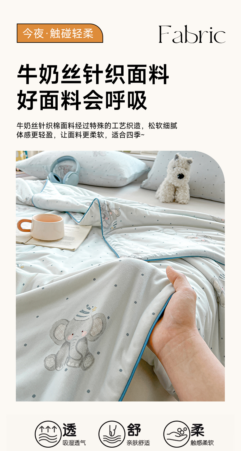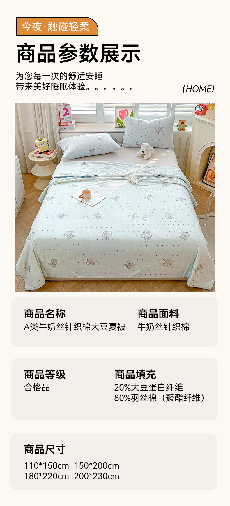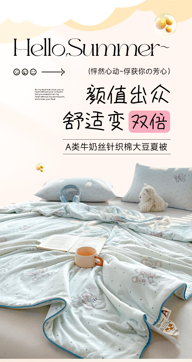 商品名称:优被业 2026新款A类牛奶丝针织棉软糯凉感大豆夏被空调被夏凉被(20%大豆国标包检测) 羞羞象