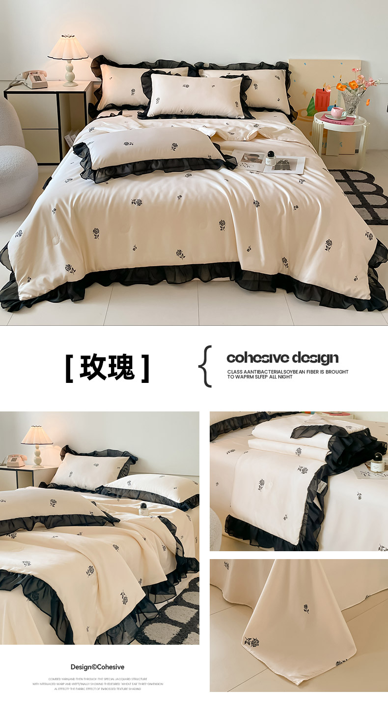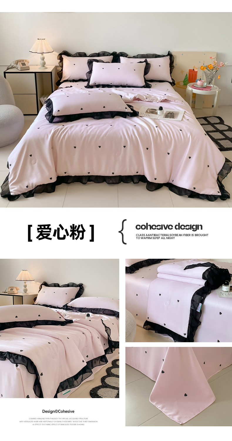 • 91家纺网 家纺一手货源 找家纺 绒世界 2026新款水洗真丝冰丝美拉德风花边夏被四件套空调被夏凉被 夏被-玫瑰-粉