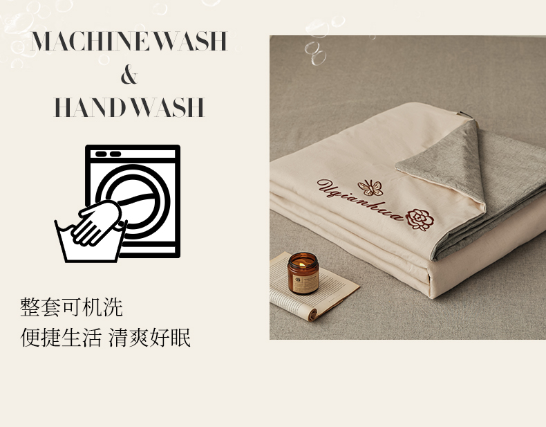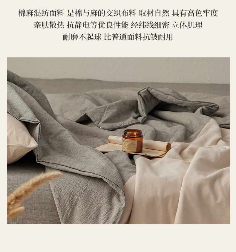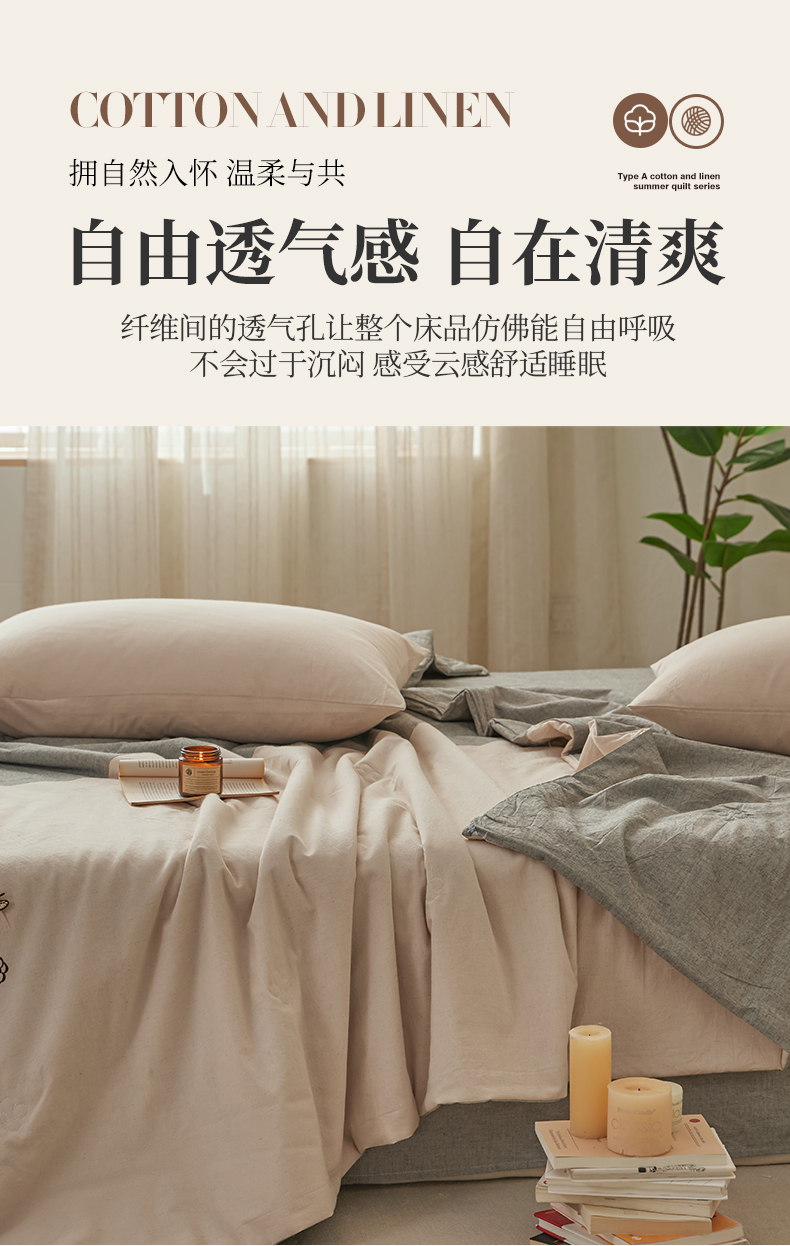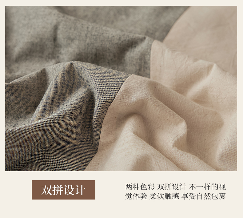 商品名称:尊妙被业 2026新款A类棉麻亚麻夏被大豆夏被四件套 棉麻 深灰拼米白