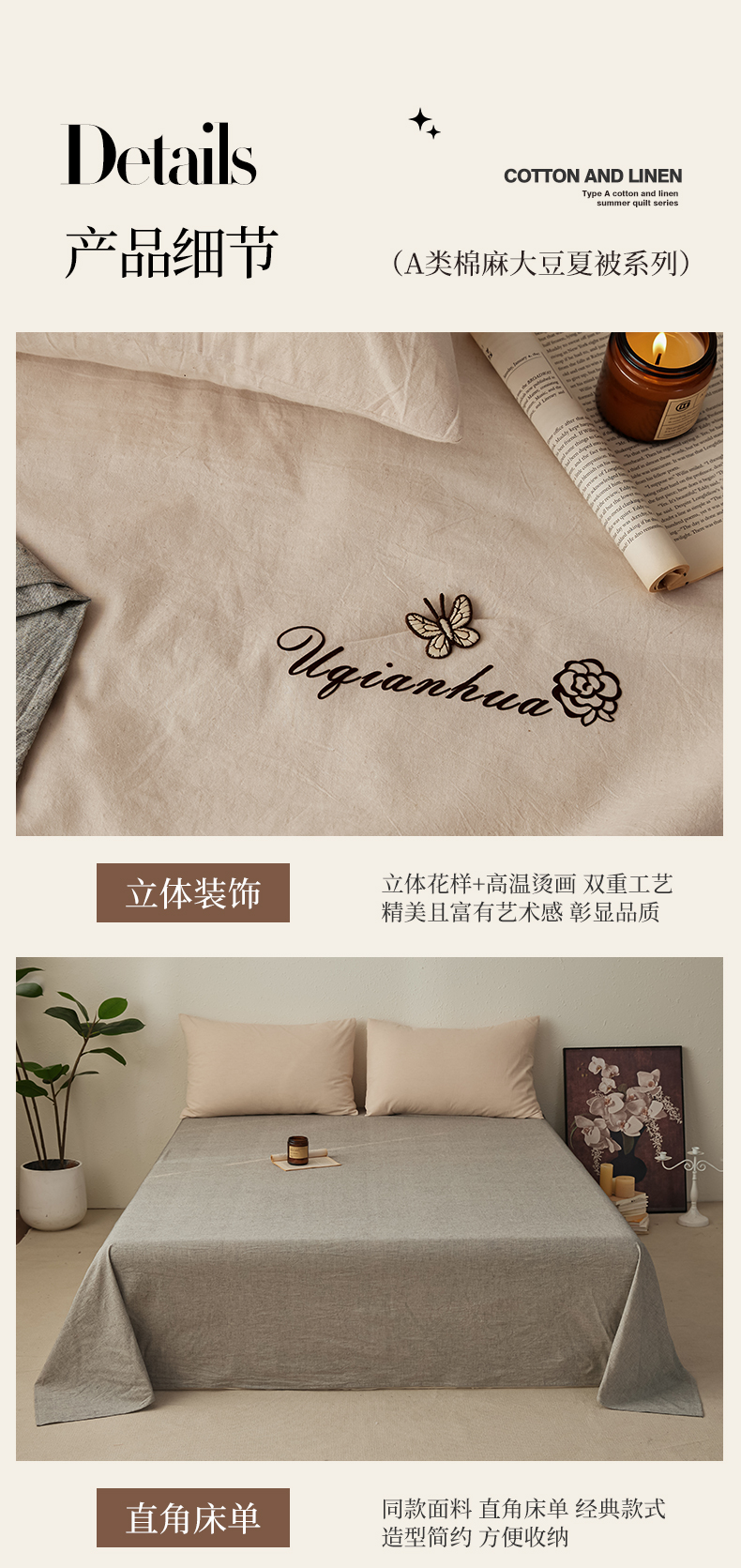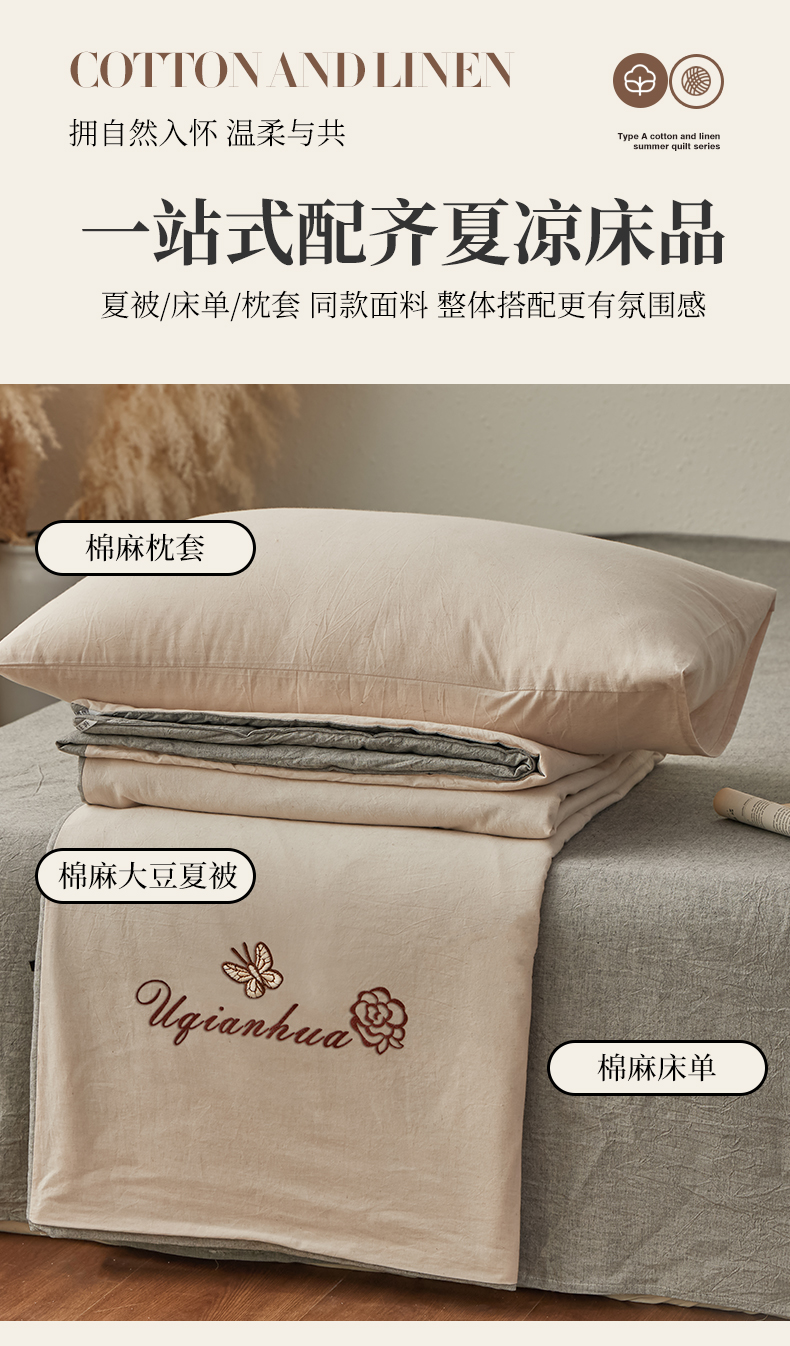 (总)尊妙被业 2026新款A类棉麻亚麻夏被大豆夏被四件套,棉麻 粉,棉麻 粉拼米白,棉麻 蓝,棉麻 蓝拼米白,棉麻 绿,棉麻 绿拼米白,棉麻 浅紫,棉麻 浅紫拼米白,棉麻 深灰,棉麻 深灰拼米白,棉麻 棕,棉麻 棕拼米白
