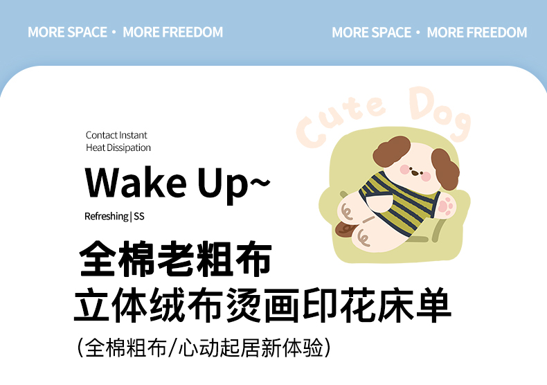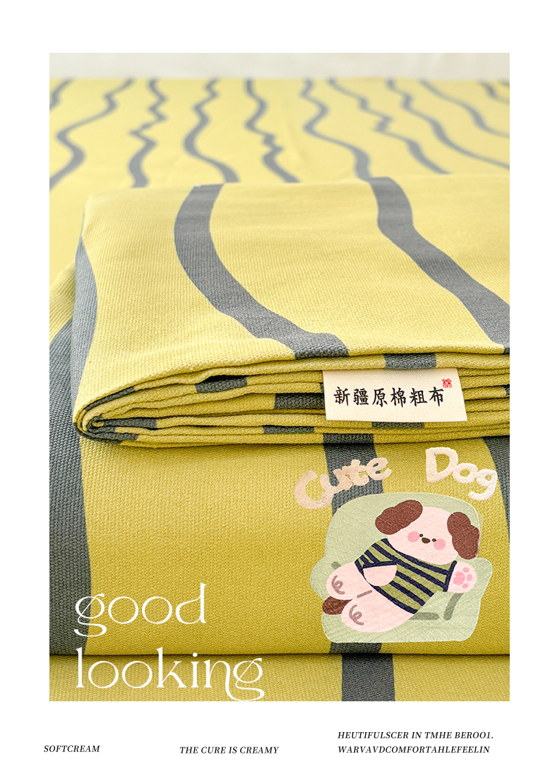 商品名称:卧趣家纺 2026新款全棉老粗布凉席席子床单单件单品床单单床单绒布贴系列 汪汪奶盖