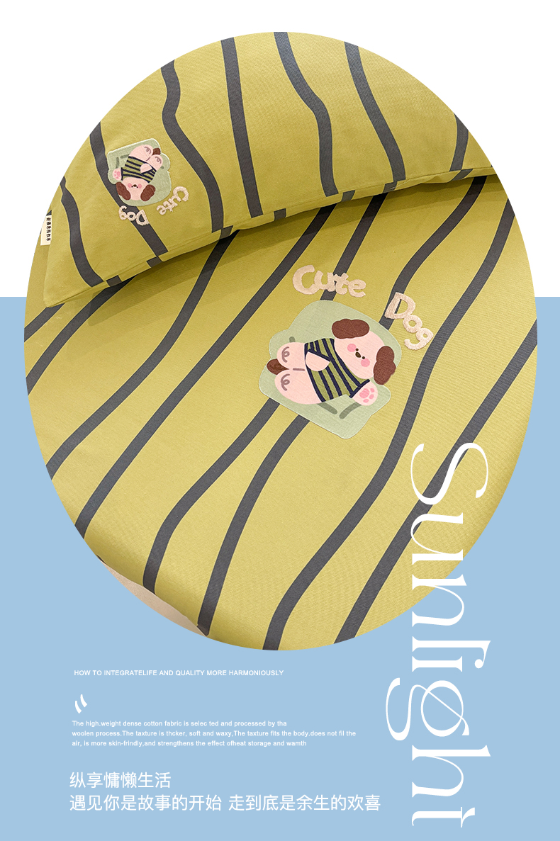 (总)卧趣家纺 2026新款A类100Pro贡缎全棉纯棉卡通毛巾绣四件套-场景一,波点维尼,七彩小熊,曲奇小熊,甜心萌萌,条纹俏皮狗,小星星