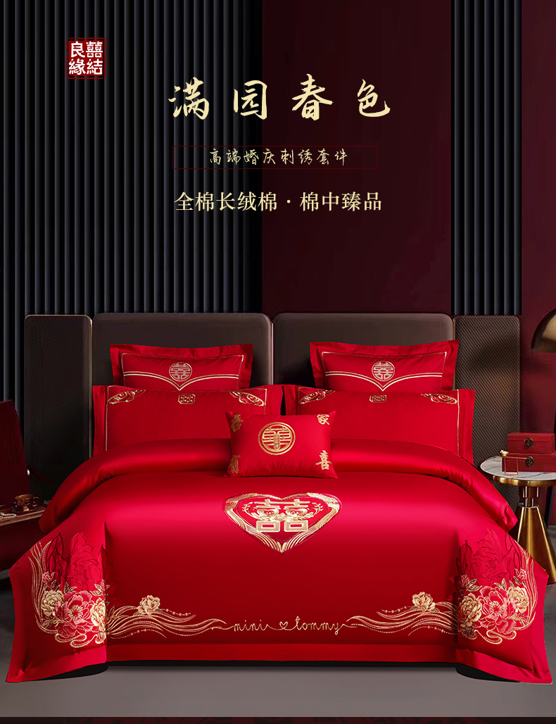当前位置: 91家纺网 > 商品网购 > 床品套件 > 四件套 > 婚庆四件套 > 富之雅婚庆 2026新款全棉刺绣长绒棉婚庆四件套多件套 满园春色