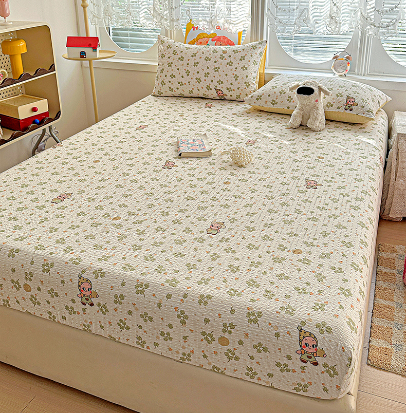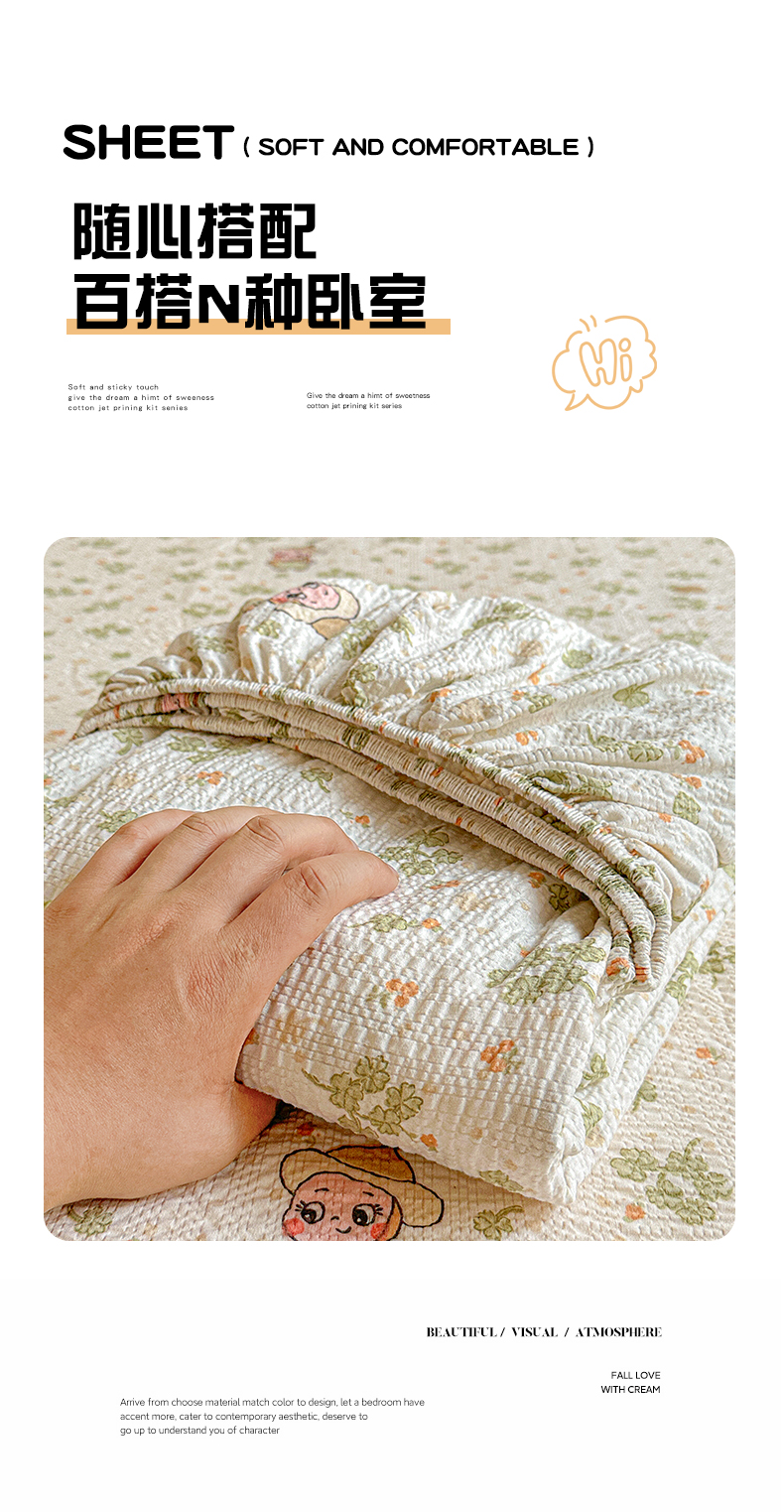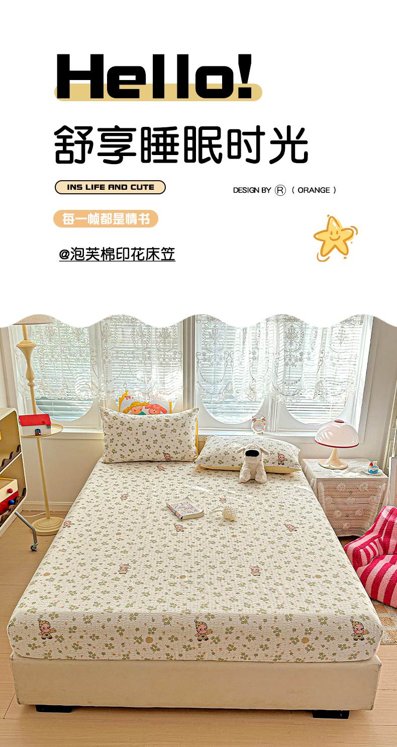 • 91家纺网 家纺一手货源 找家纺 悦织湾家纺 2026新款老粗布印花床单床笠床笠三两件套春秋学生宿舍单双人床笠 甜美星星人