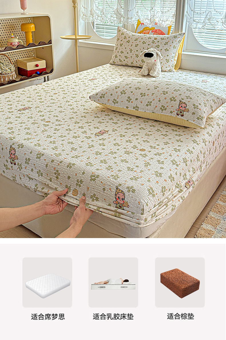 当前位置: 91家纺网 > 商品网购 > 床上用品 > 床笠 > 悦织湾家纺 2026新款老粗布印花床单床笠床笠三两件套春秋学生宿舍单双人床笠 甜美星星人