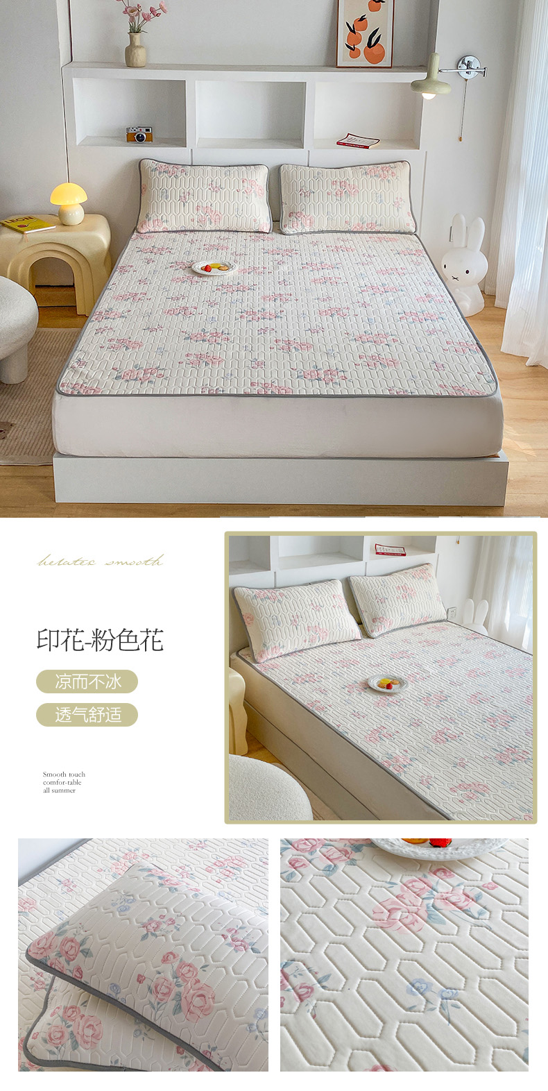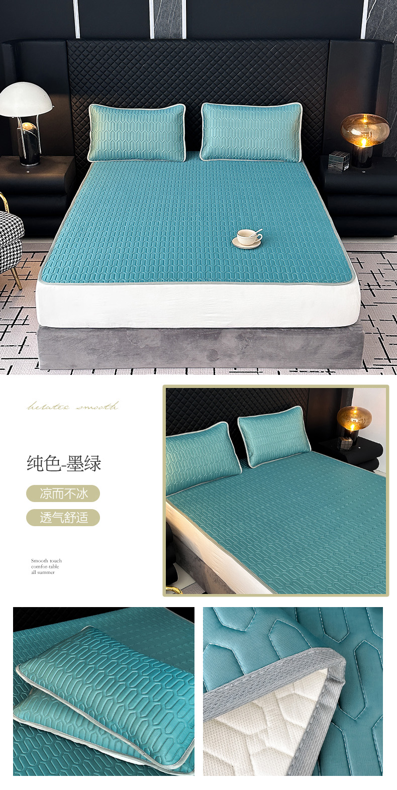 商品名称:七里香 2026春夏新款凉感丝数码印花乳胶凉席 纯色-水蓝