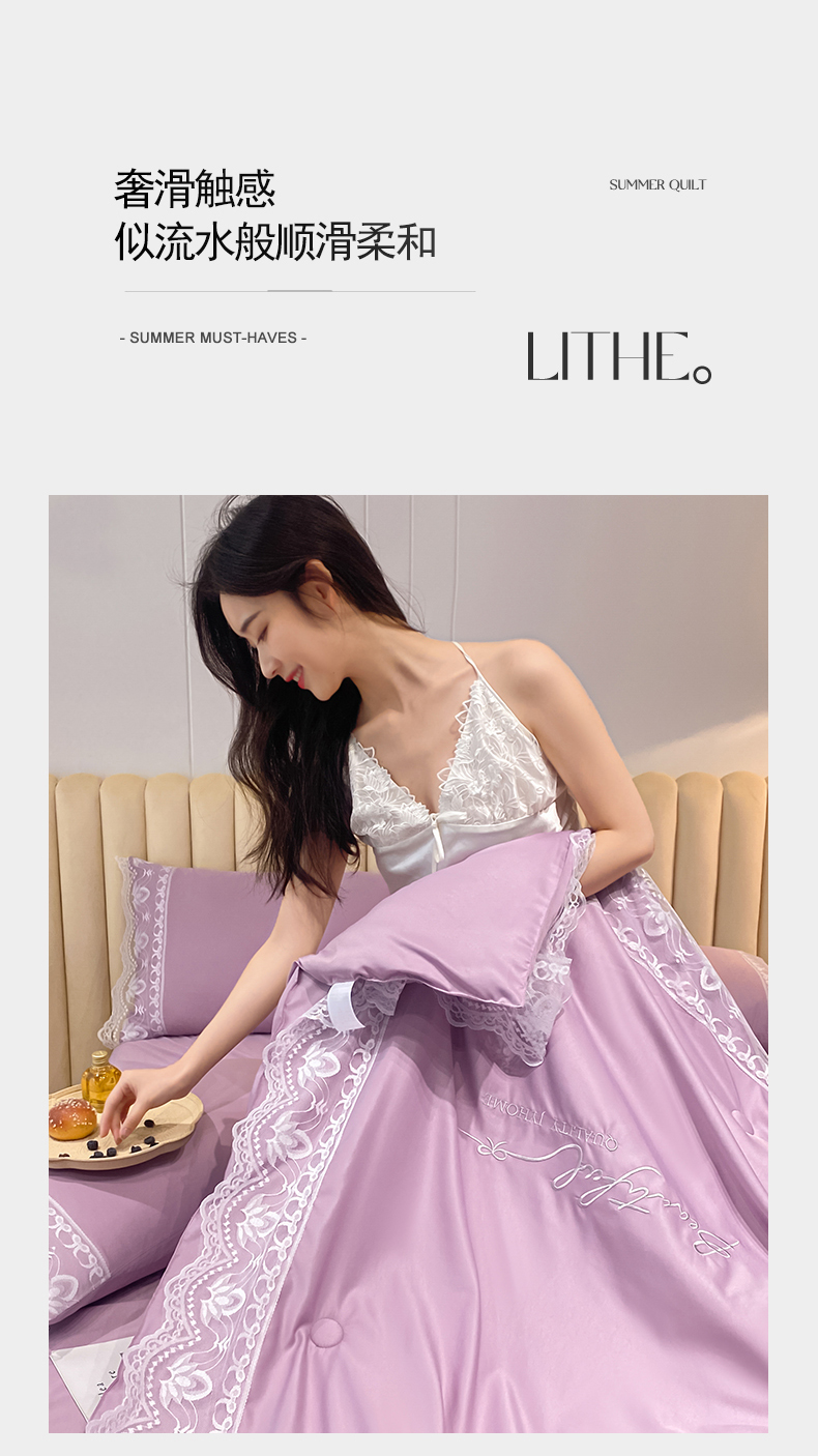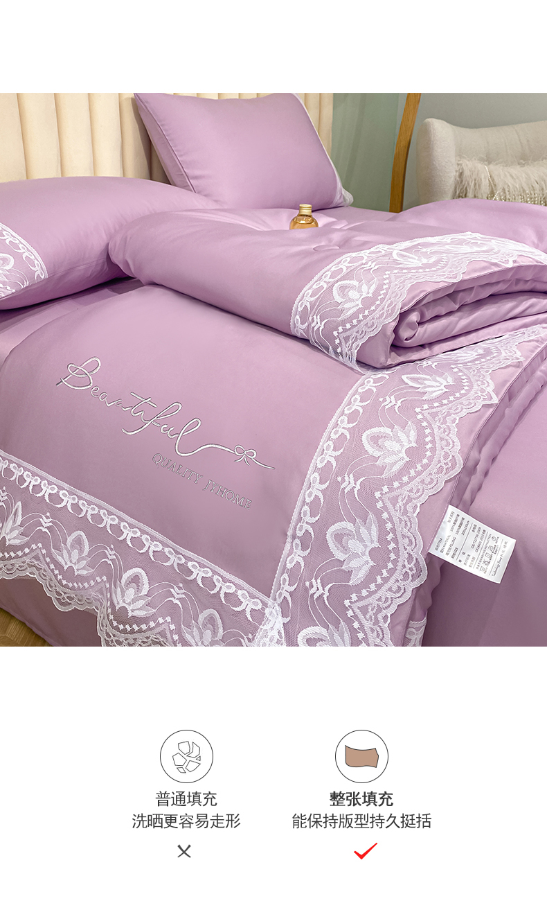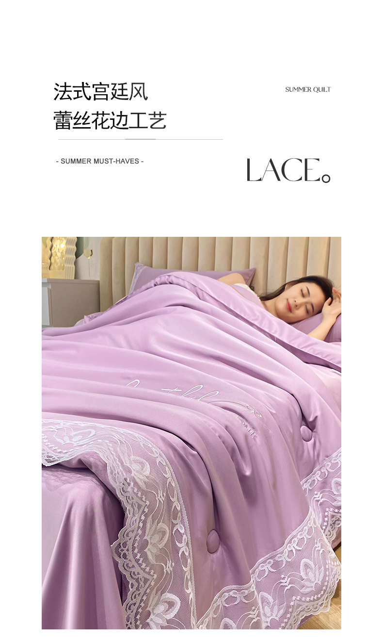 • 91家纺网 家纺一手货源 找家纺 益多眠 2026新款水洗天丝蕾丝花边夏被夏凉被空调被-公主 公主-优雅紫