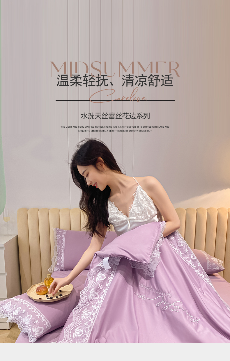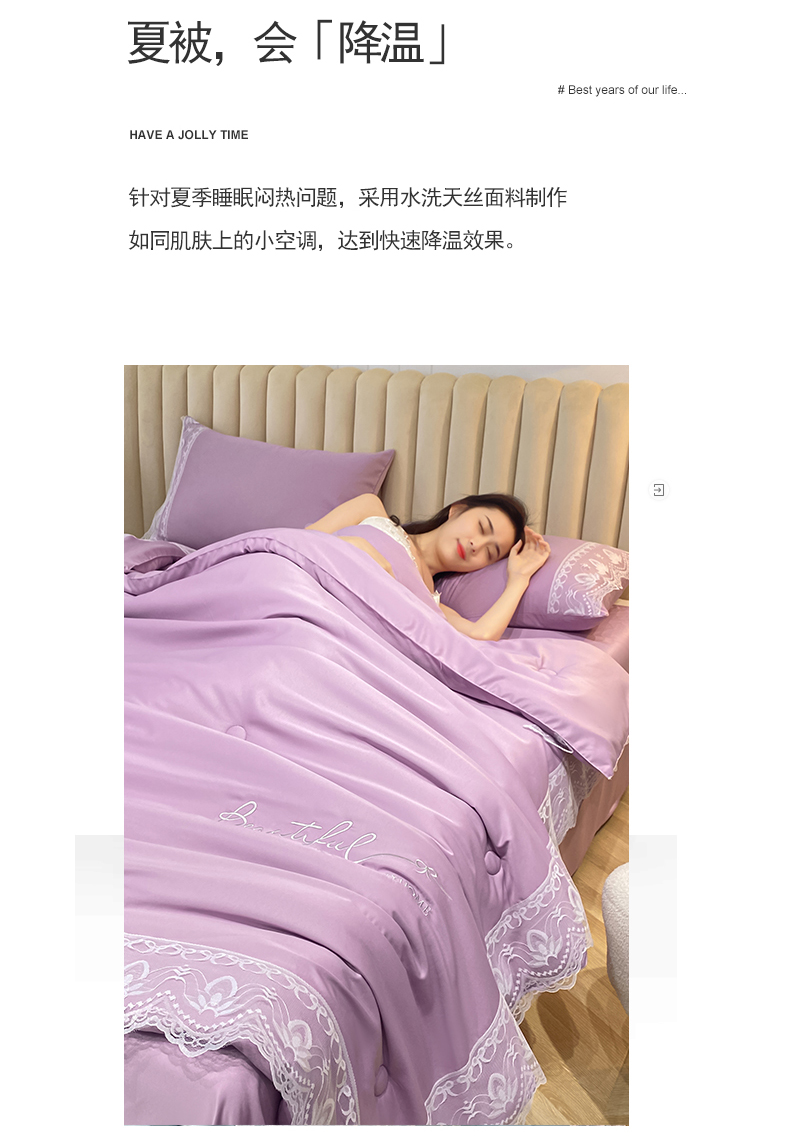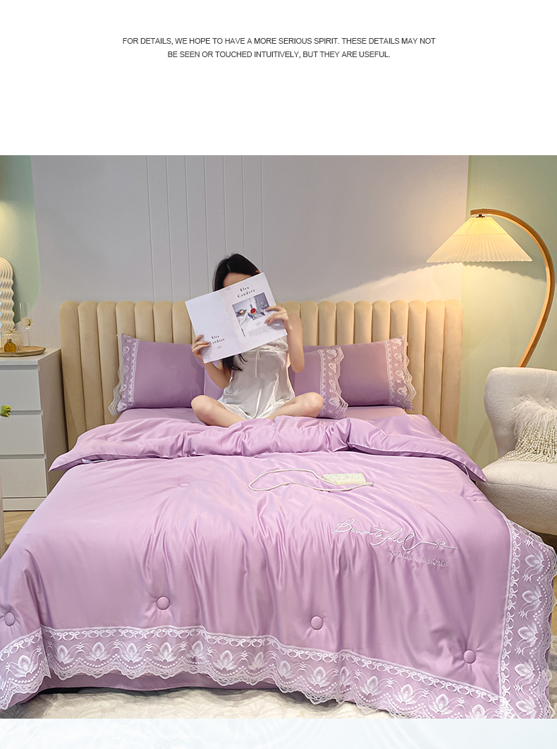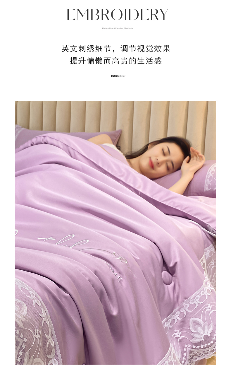 • 91家纺网 家纺一手货源 找家纺 益多眠 2026新款水洗天丝蕾丝花边夏被夏凉被空调被-公主 公主-优雅紫