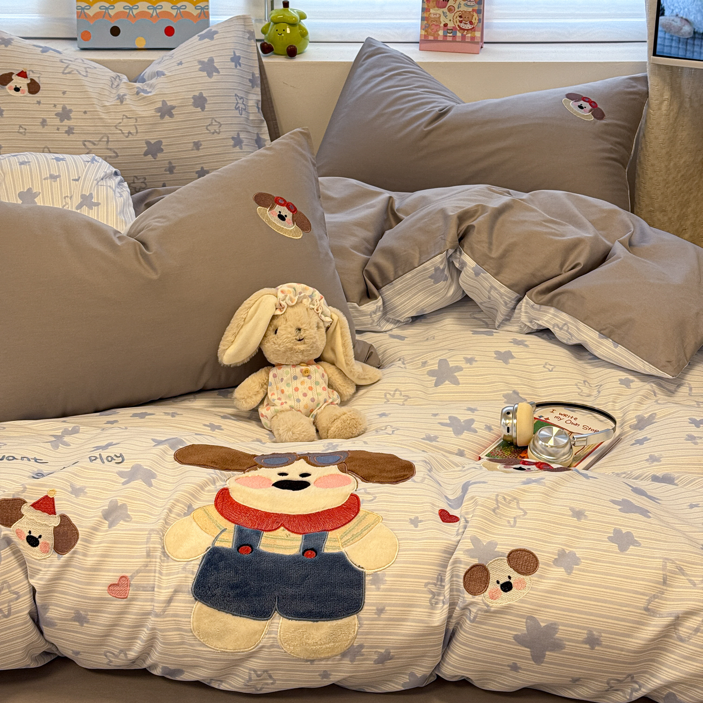 当前位置: 91家纺网 > 商品网购 > 床品套件 > 四件套 > 全棉普通四件套 > 懒猫家纺 2026新款A类高精密40支13374全棉纯棉喷气印花贴布绣四件套 【带礼盒】 条纹修狗