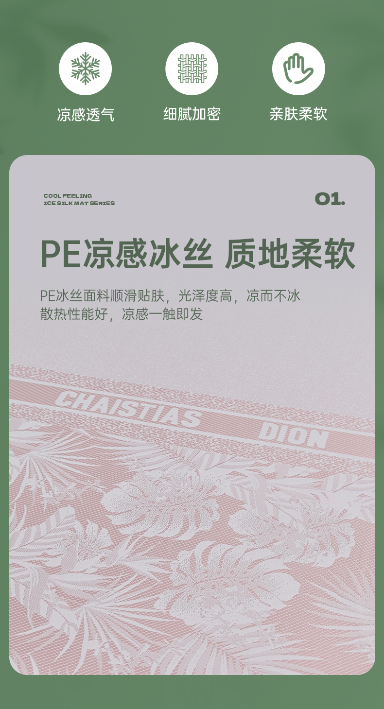 (总)小牛席业 2026新款小冰块大象凉感冰丝席(床笠款)凉席竹席藤席冰藤席乳胶席豆豆席,绿色,粉色,灰色,蓝色,香槟