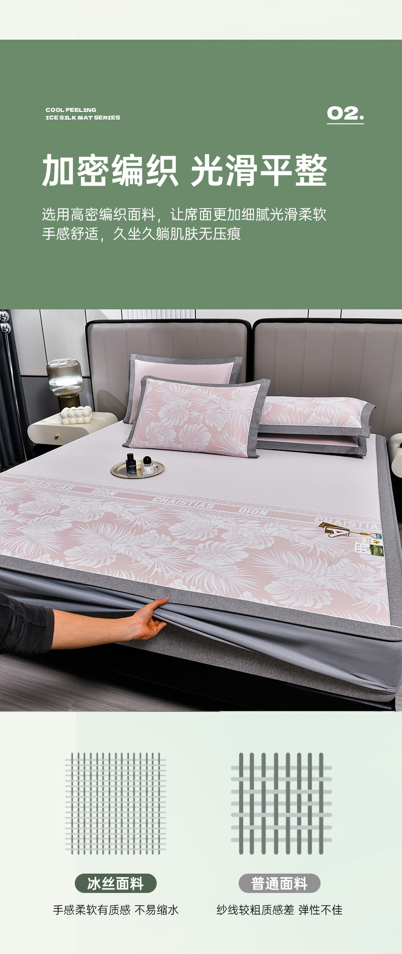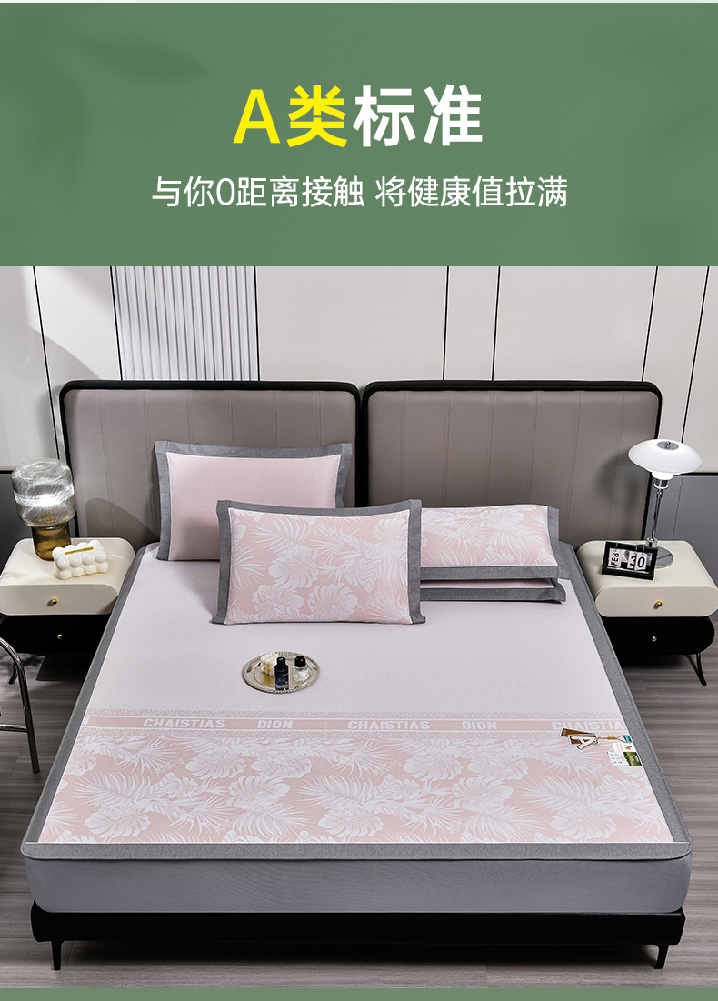 (总)2023新款超精密冰丝席-小斜纹系列-床笠款藤席凉席竹席,粉色,蓝色,绿色,银灰