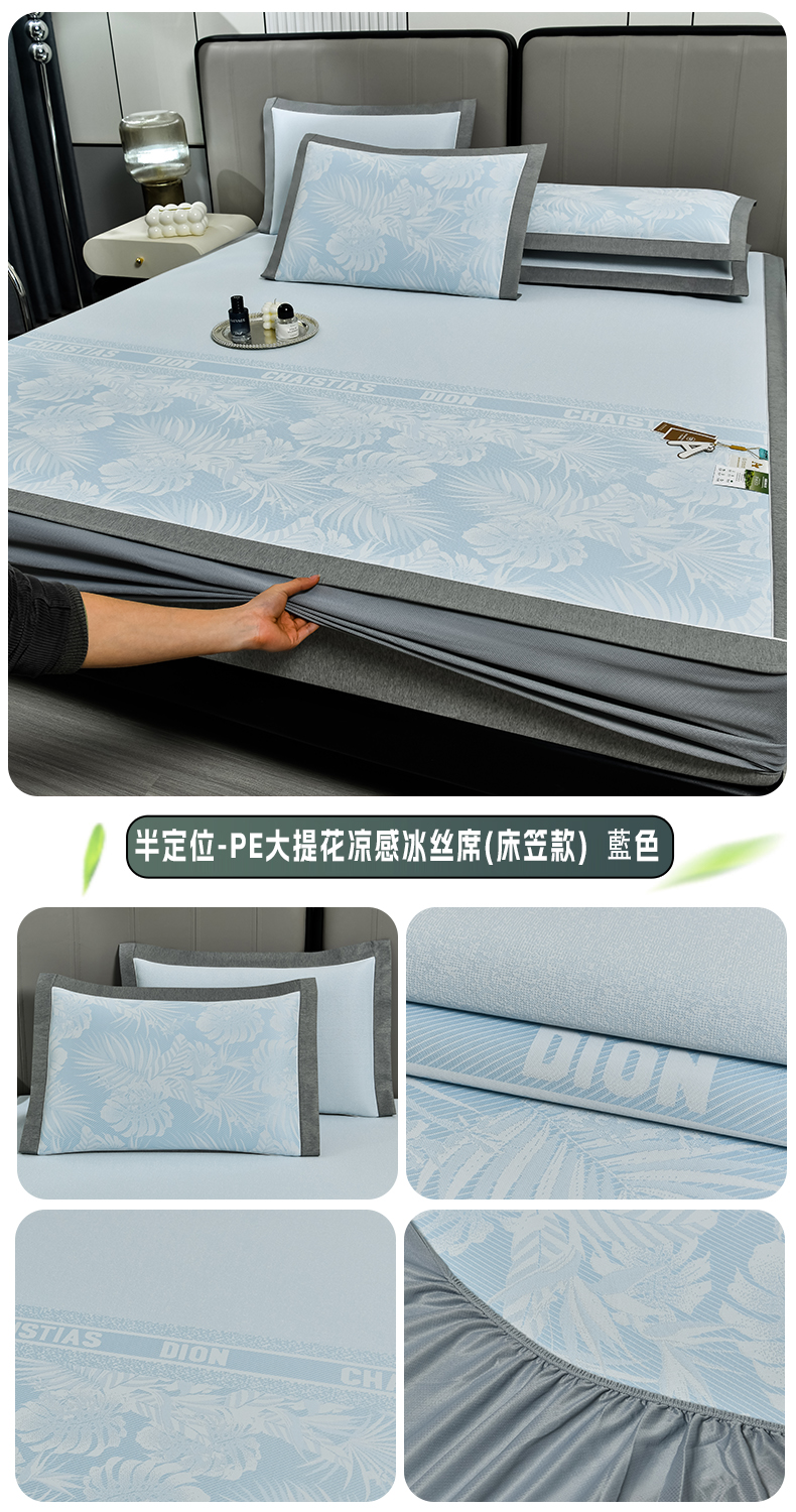 (总)小牛席业 2026春夏新款轻奢半定位凉感冰丝席凉席席子系列床笠款,轻奢半定位-粉色 床笠款,轻奢半定位-灰色 床笠款,轻奢半定位-蓝色 床笠款,轻奢半定位-抹茶 床笠款,轻奢半定位-香槟 床笠款