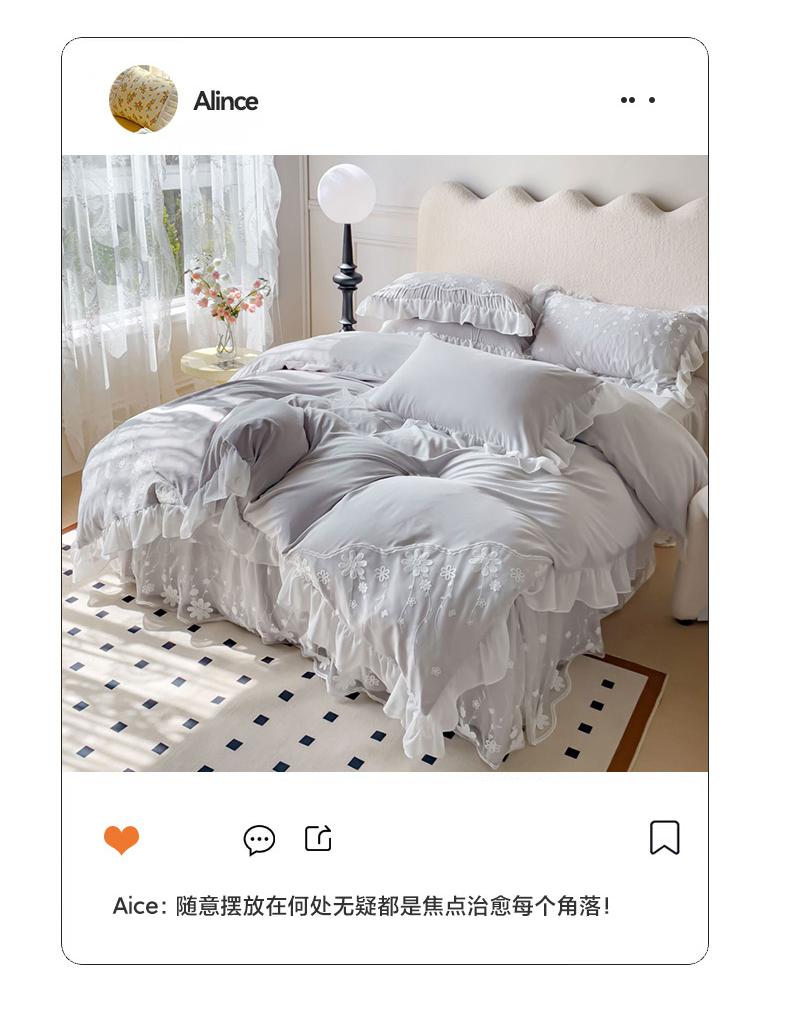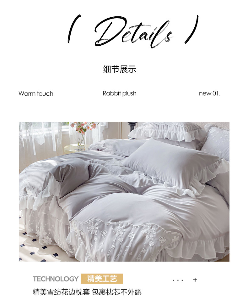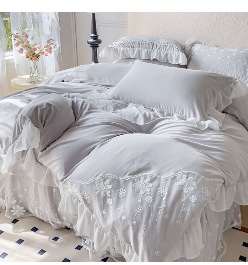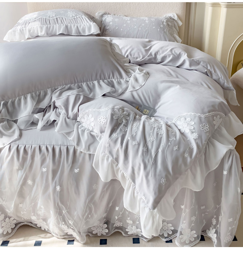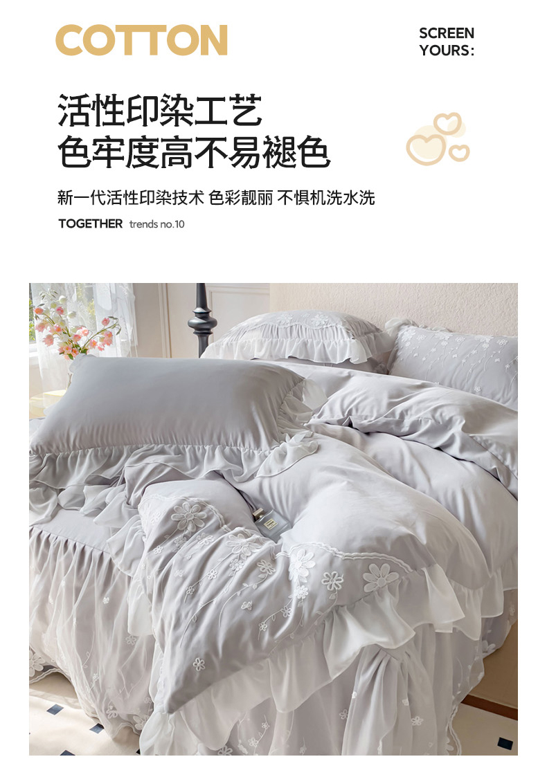 商品名称:睡美人 2026新款锦棉蕾丝款系列韩版公主风床裙四件套-花舞 花舞-香槟灰