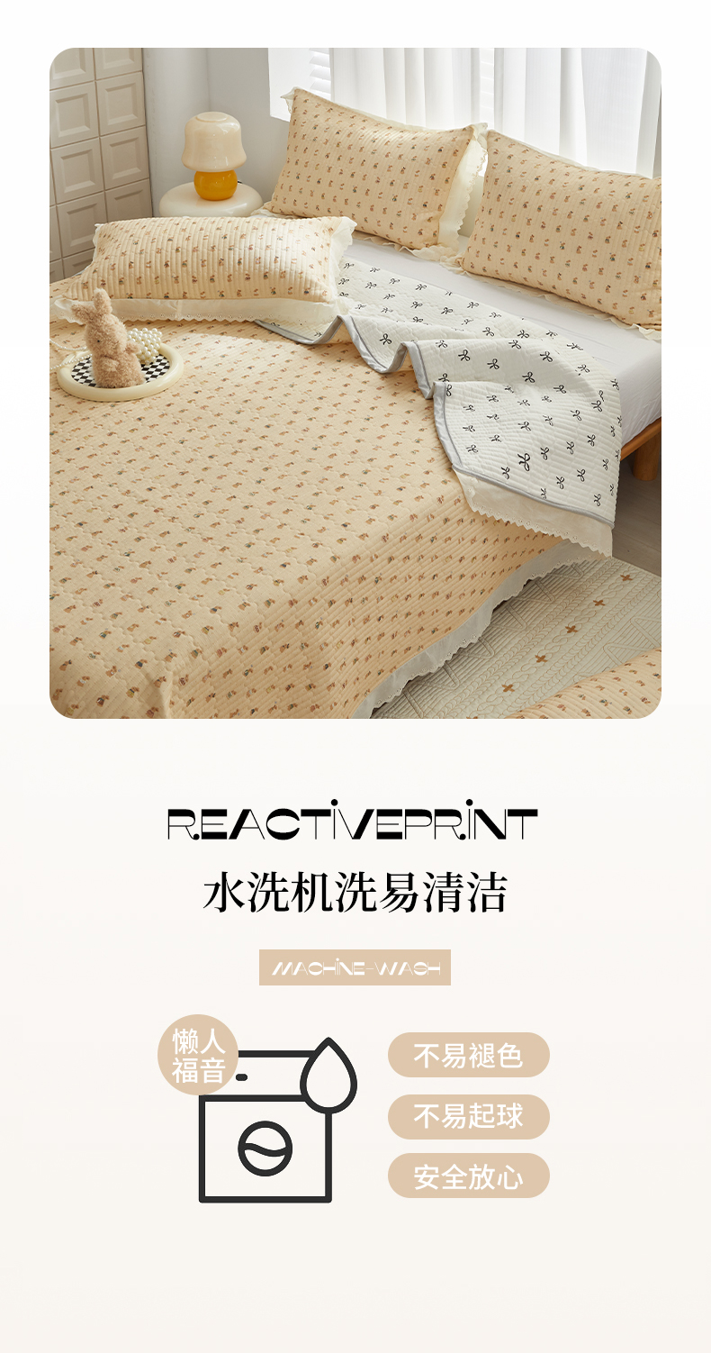 (总)舒居家纺 2025新款双面全棉酵素砂洗床盖( 风格二),组合图,爱心木马,比利小熊,花季少女,花开无声--咖,花睿--青草绿,洛林--粉,迷彩花兔,俏皮狗,兔兔乐园,小汽车,樱桃格子